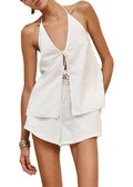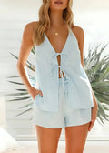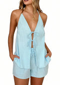 Women's Halter Tie Front Tank Top and High Waist Shorts 2 Piece Set