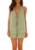 What a lovely shorts set! It's a must-have for cool summer days out, and it'll keep you looking glamorous and comfortable all the time.Its tie and backless makes you look charming, and the casual and loose style is suitable for most people. Get cozy with our set all season!