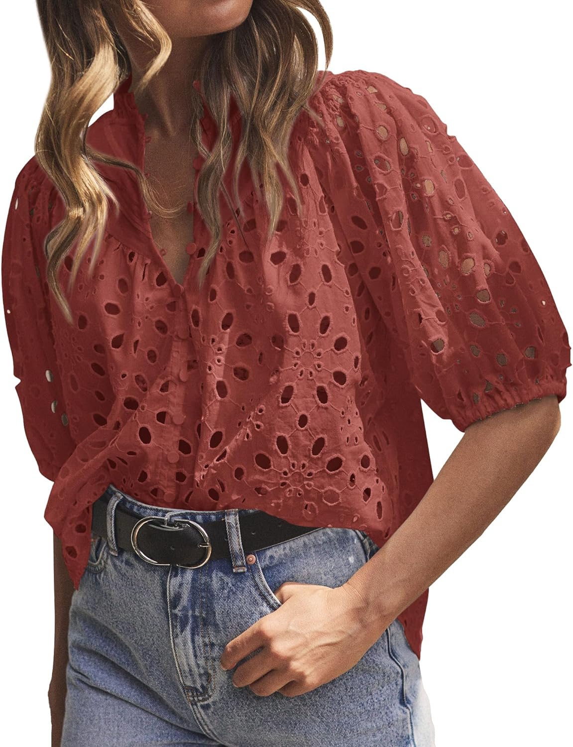 The soft and lightweight material is perfect for warm summer days. Delicate cut-out eyelets add an ethereal, romantic essence to the bohemian top.