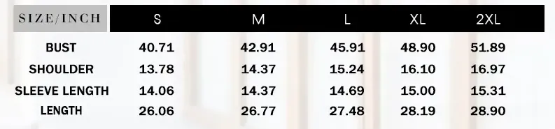 1. Measurements are taken with the garment laying flat. Measurements are approximate - please allow up to a 1/2" tolerance for each measurement.