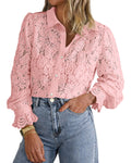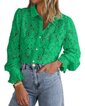 Women's Lace Blouses Long Sleeve Button Down Shirt