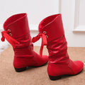 Package Includes: 1*Women's Lace-Up Chunky Heel Mid-Calf Boots