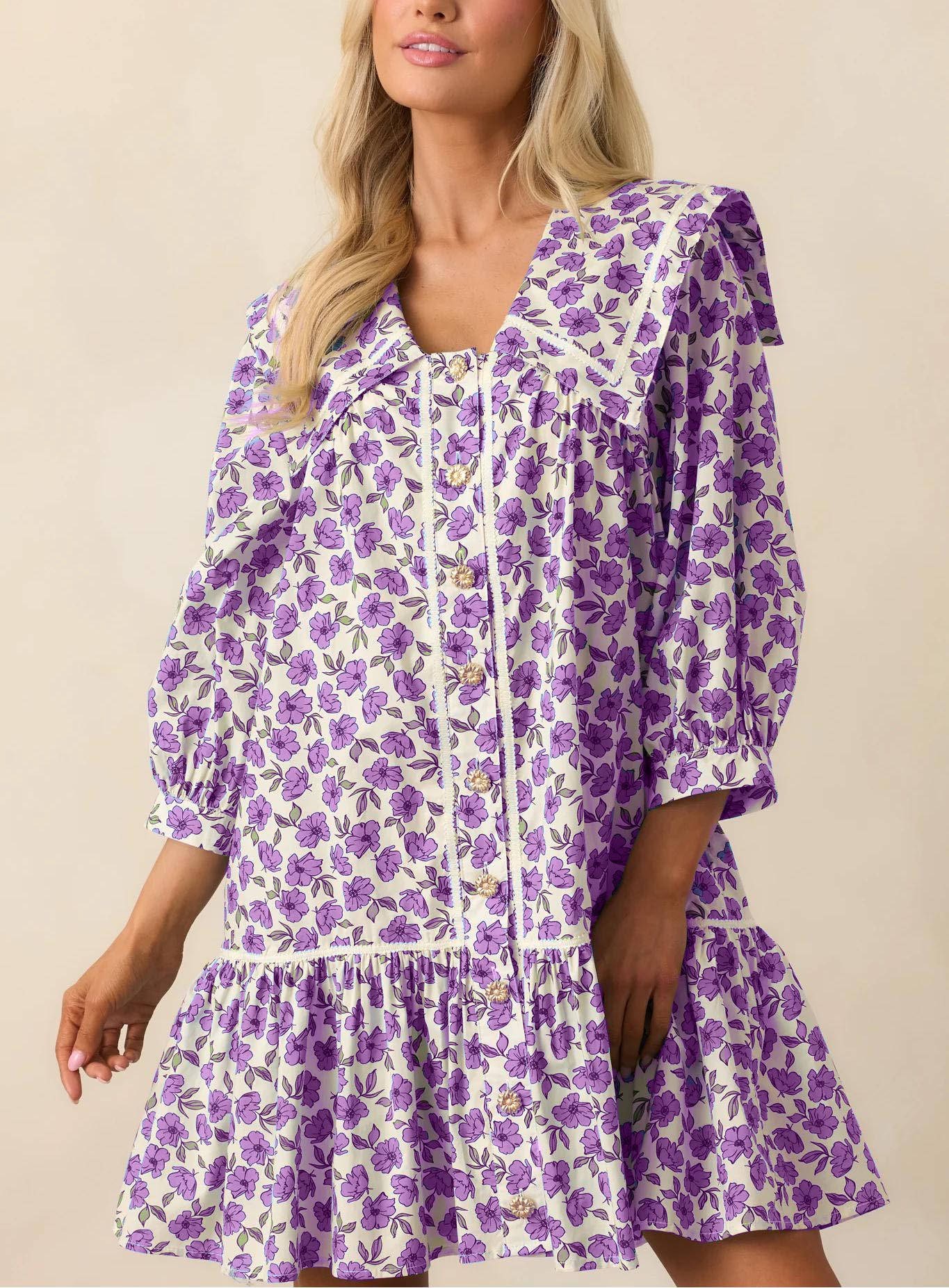 Women's Lapel Button Front Floral Mini Dress