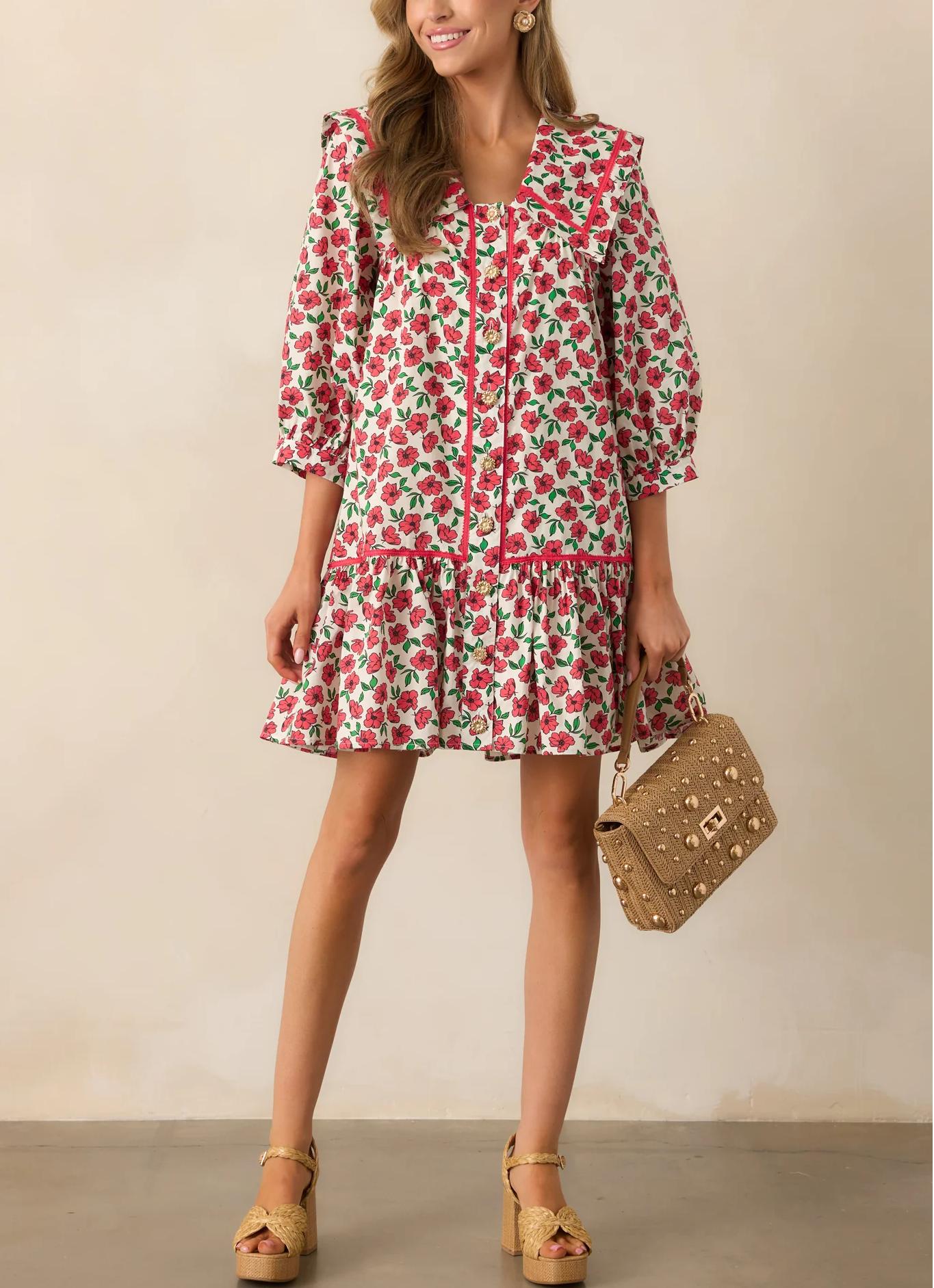 Be the life of the party in this playful vibrant floral mini dress. The eye-catching color and playful floral print will make you stand out from the crowd. The long sleeves make it perfect for cooler evenings. Get ready to be the center of attention in this must-have dress and enjoy it!