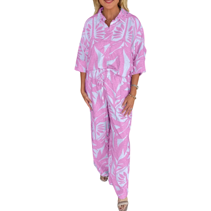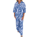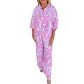 Women's Leaf Print V-Neck Top Wide Leg Pants Set