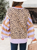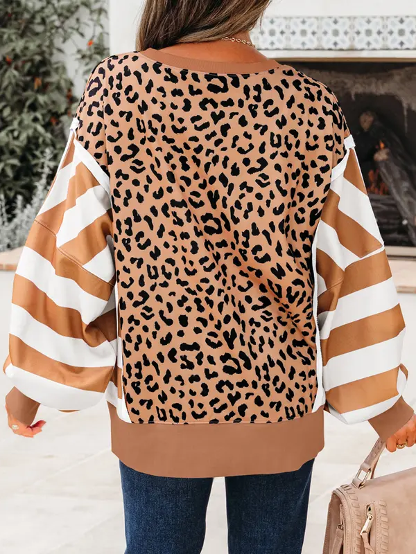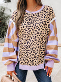 Women's Leopard Crew Neck Drop Shoulder Casual Sweatshirt