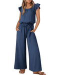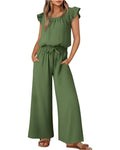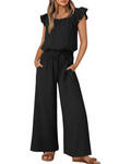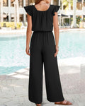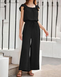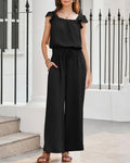 Women's Linen Ruffle Sleeve Solid Color Jumpsuit