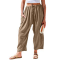 These breathable linen‑blend palazzo pants feature a relaxed wide‑leg cut and an elastic drawstring waist for all‑day ease. Deep side pockets and a softly cropped hem deliver effortless comfort and a laid‑back vibe.