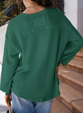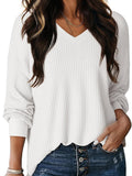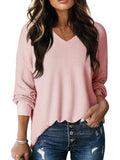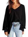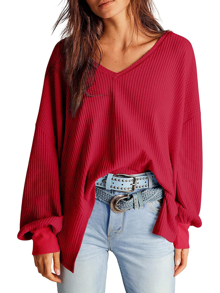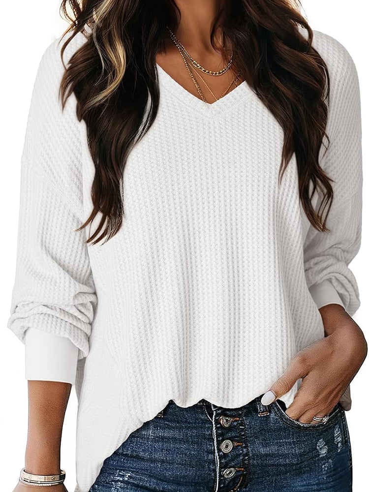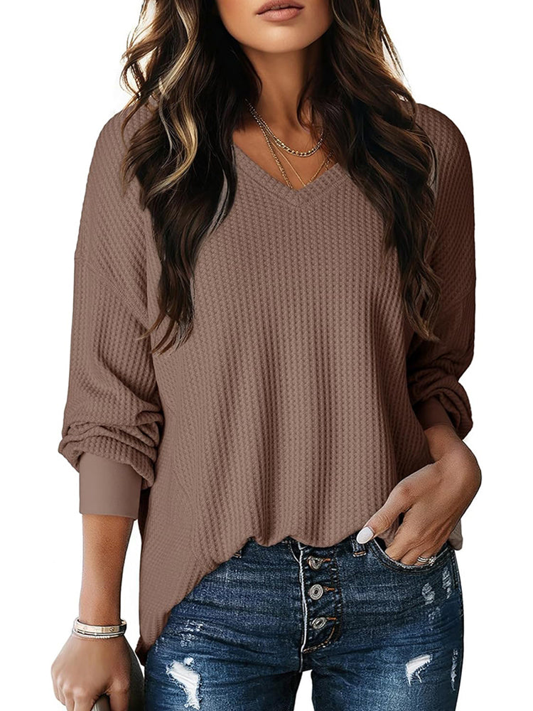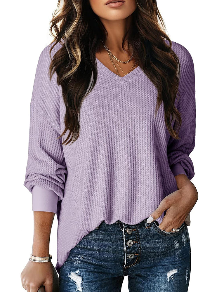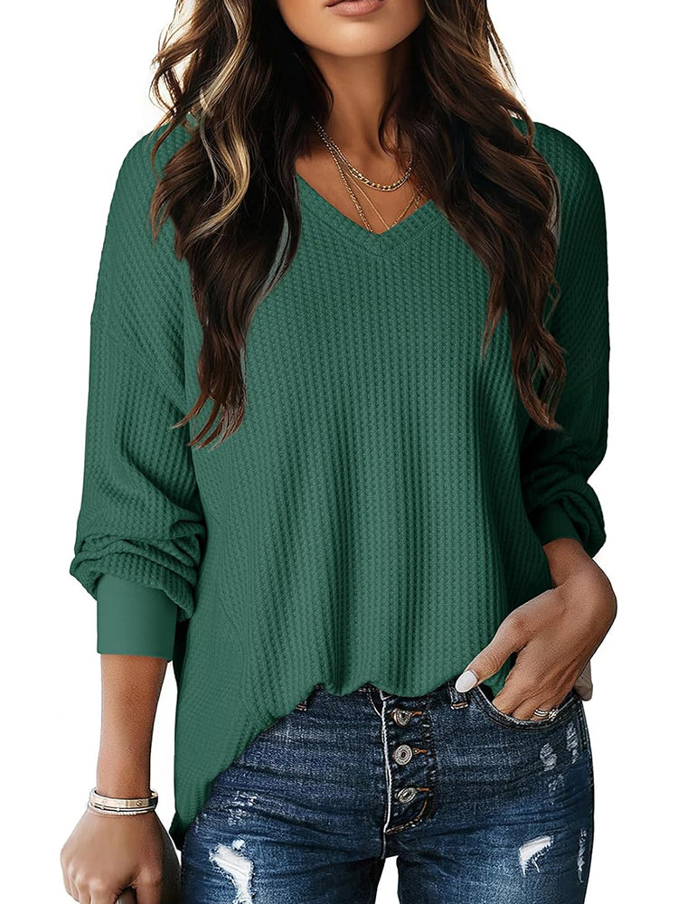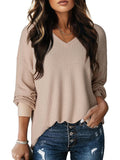 Womens Long Lantern Sleeve Waffle Knit Tops