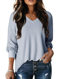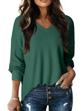 Simple But Versatile Solid Color Long Sleeve Shirts With Raw Exposed Seaming Throughout Design, The Perfect Combination Of Classic And Fashion, The Special Design business casual tops Definitely Make You Pop Out, The Basic Solid Color Matches Everything And Never Goes Out Of Style.