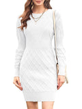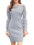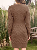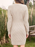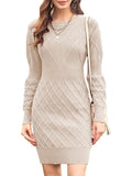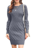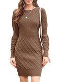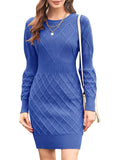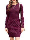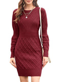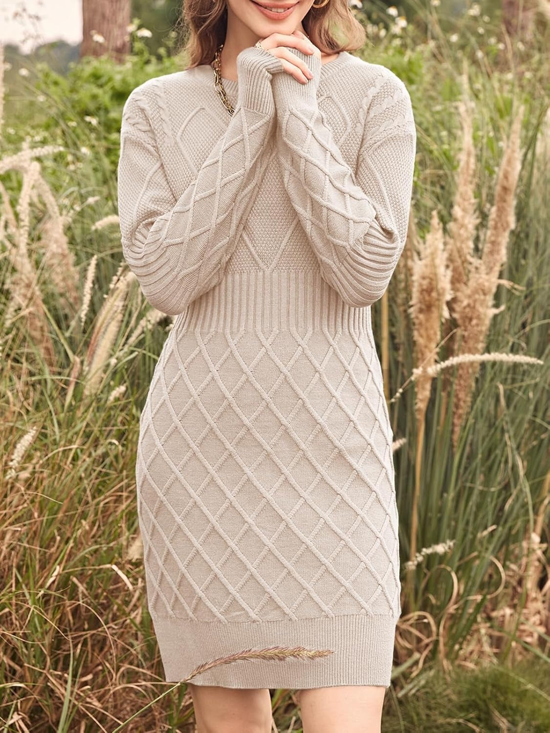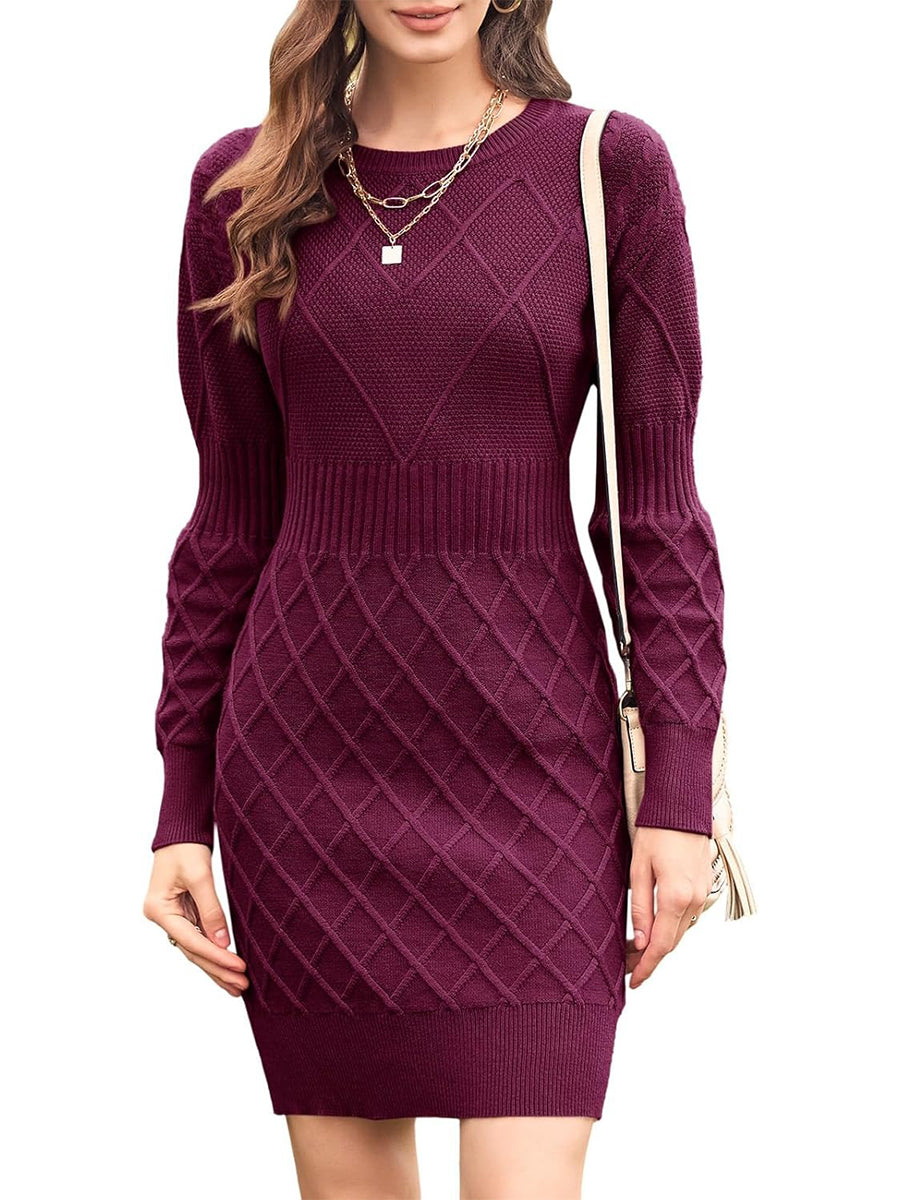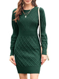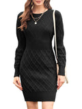 Women's Long Sleeve Crewneck Diamond Knit Sweater Dress