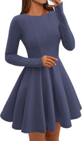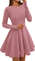 Womens Long Sleeve High Waist Pleated Flowy A Line Party Wedding Guest Dress