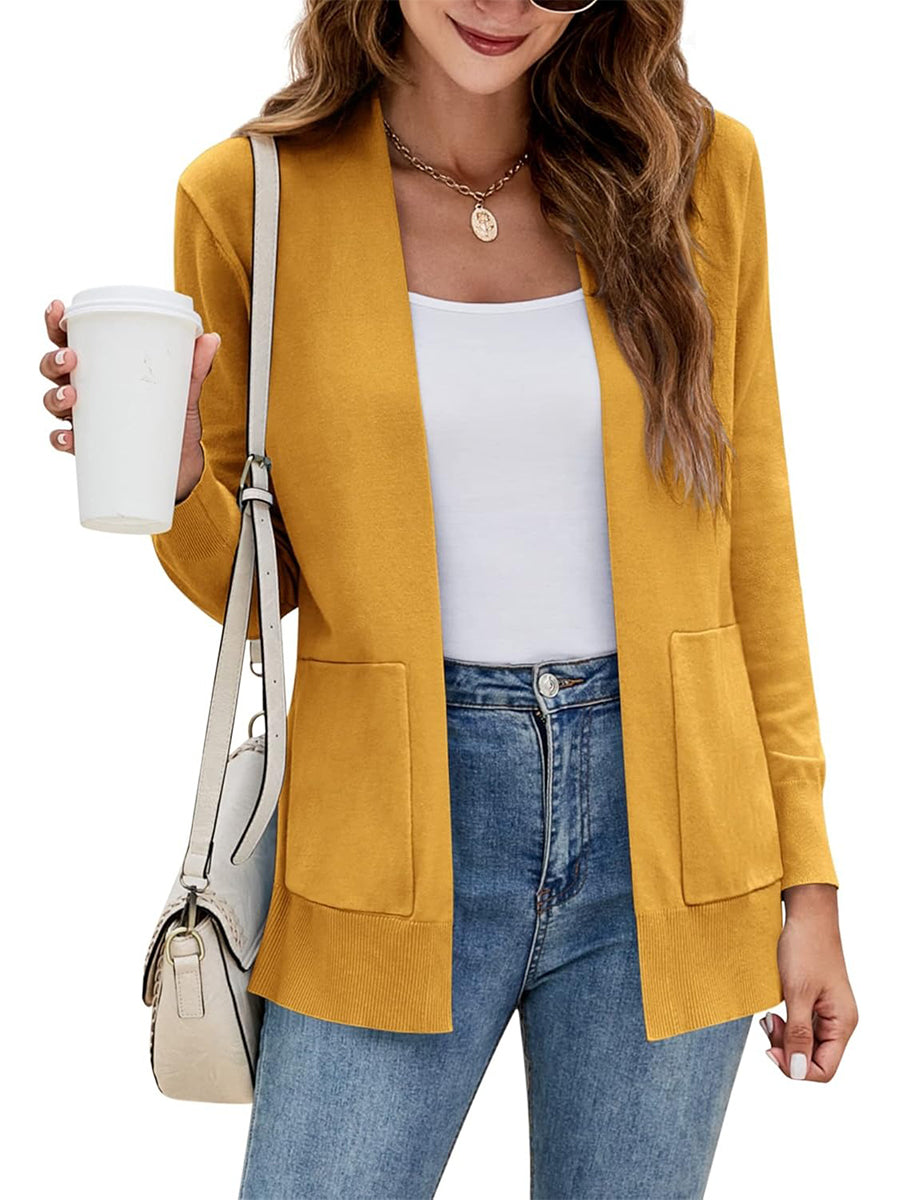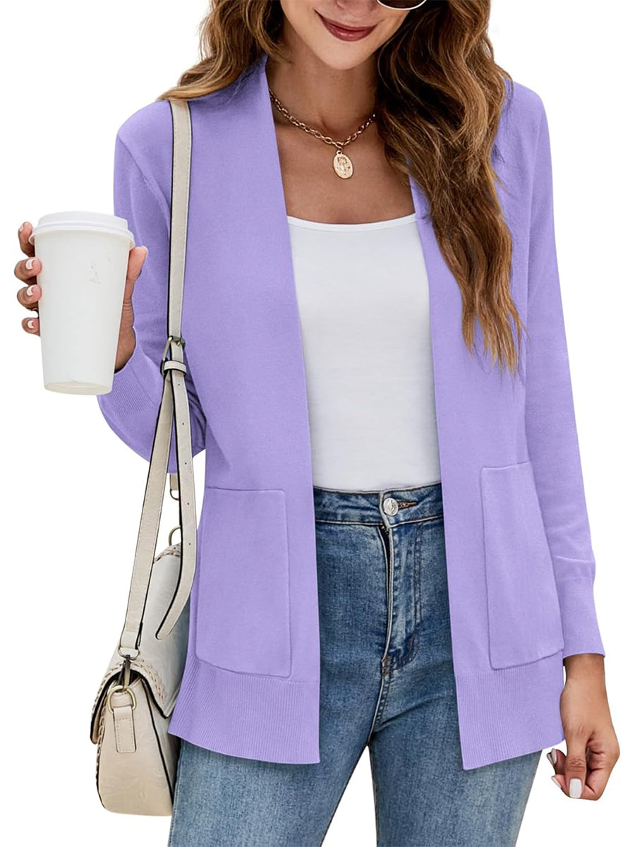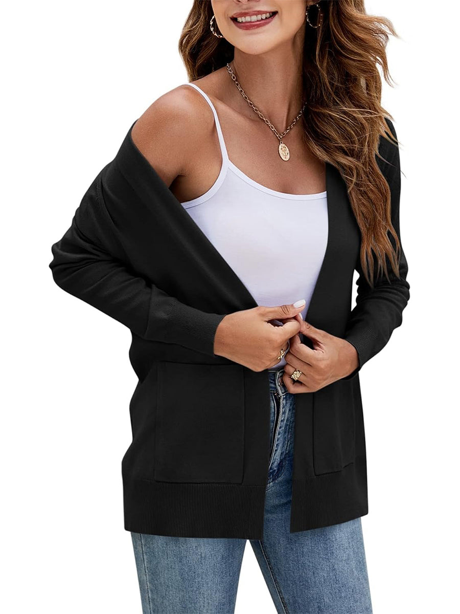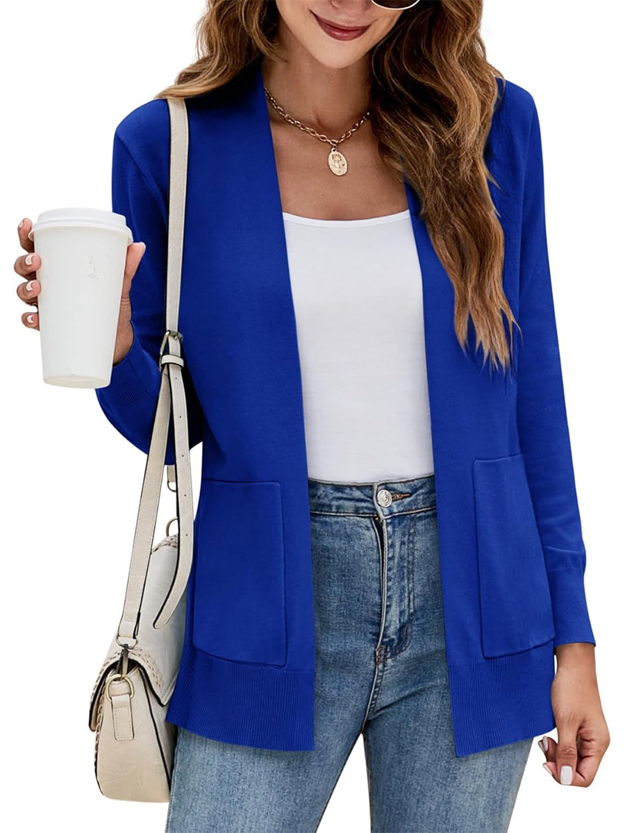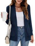 Women's Long Sleeve Open Front Knit Cardigan Sweater with Pockets