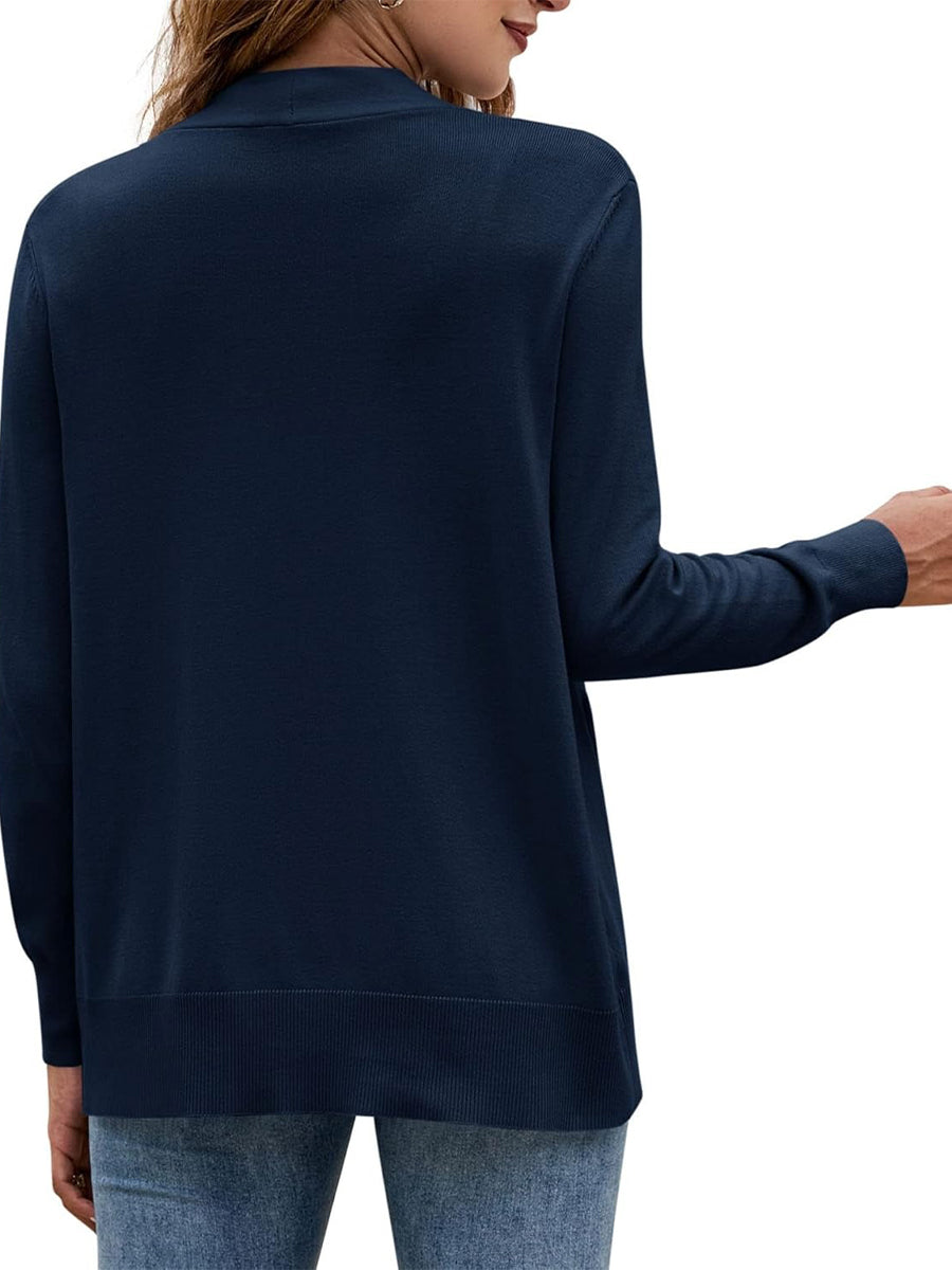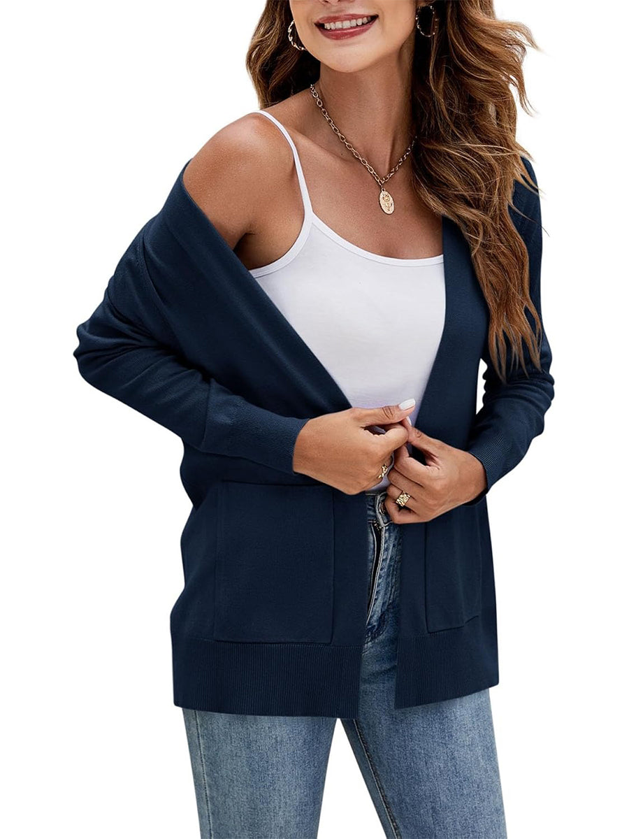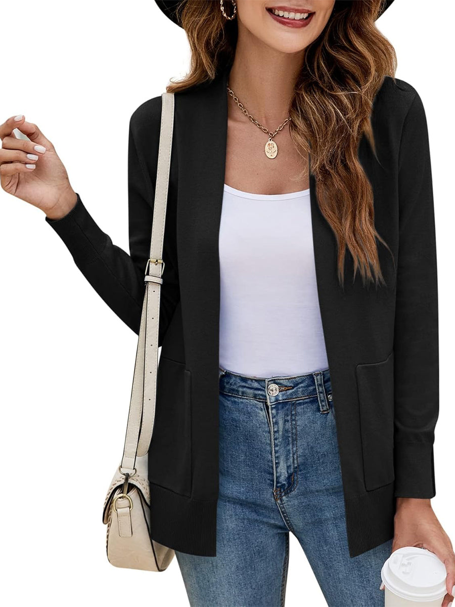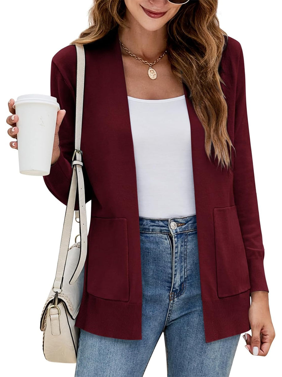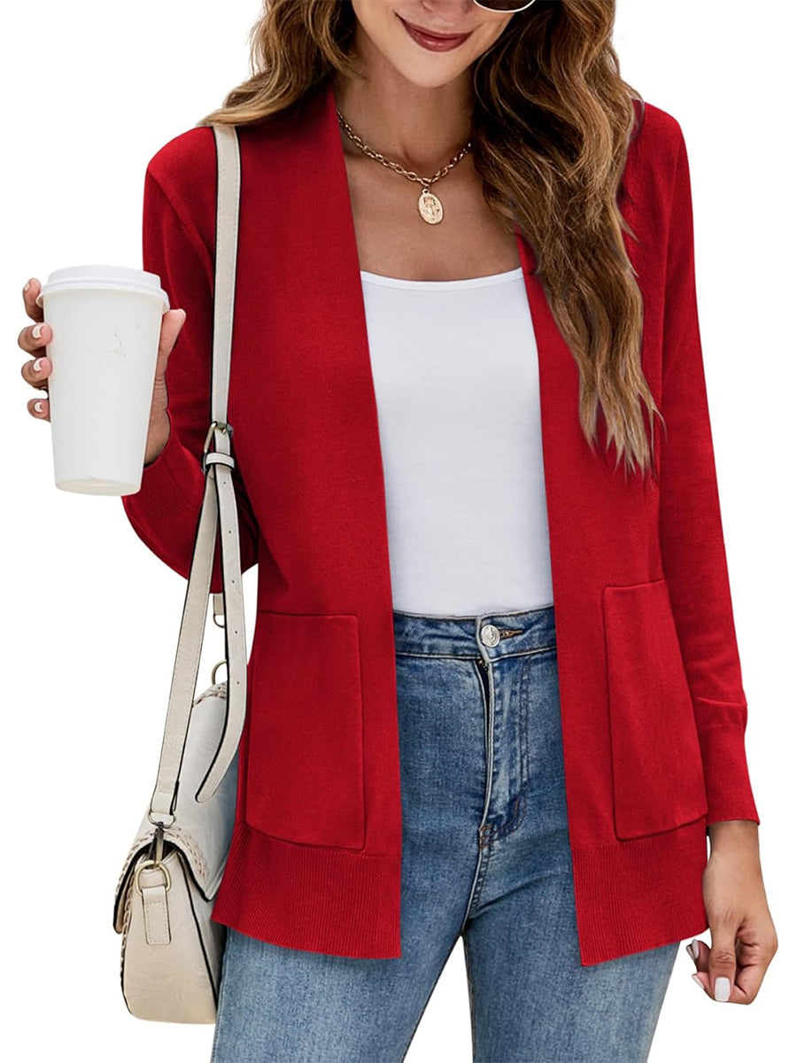 Women's Long Sleeve Open Front Knit Cardigan Sweater with Pockets