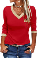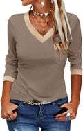 Womens Long Sleeve T Shirts Casual V Neck Color Block Tunic Tops