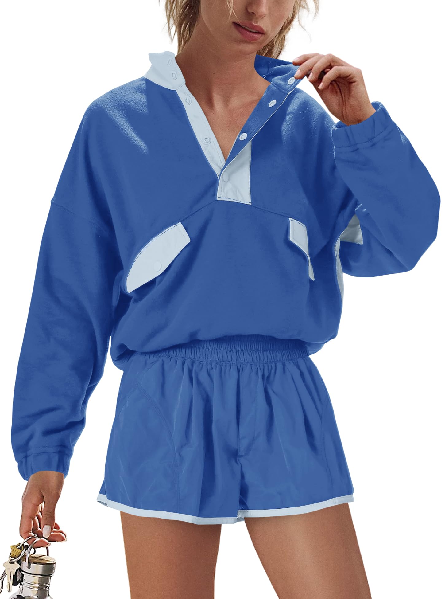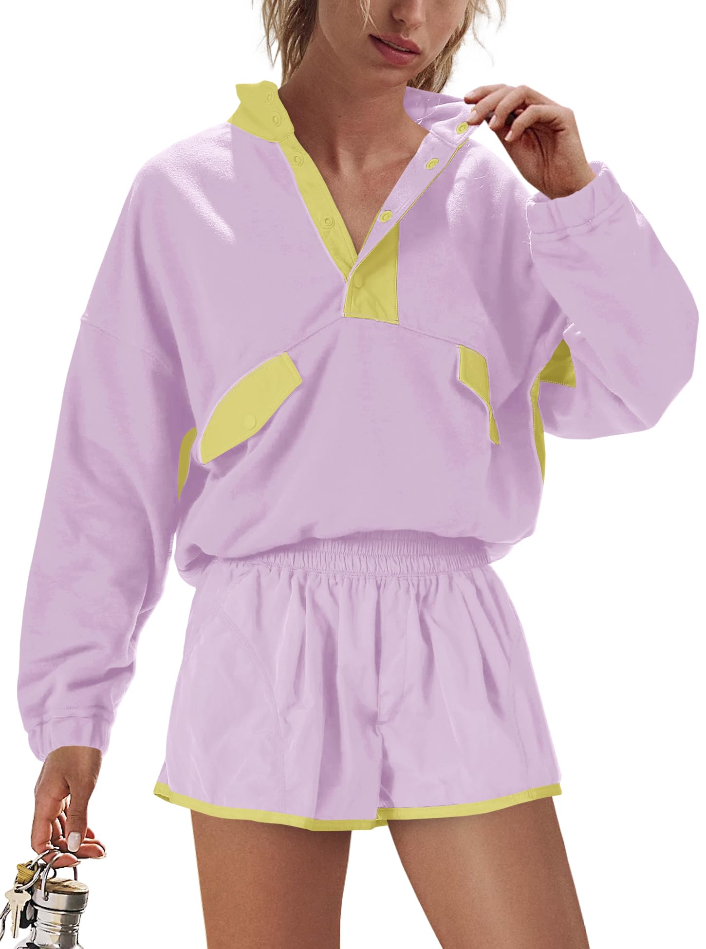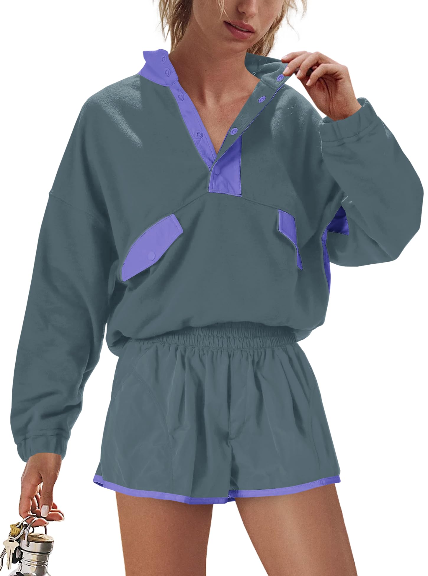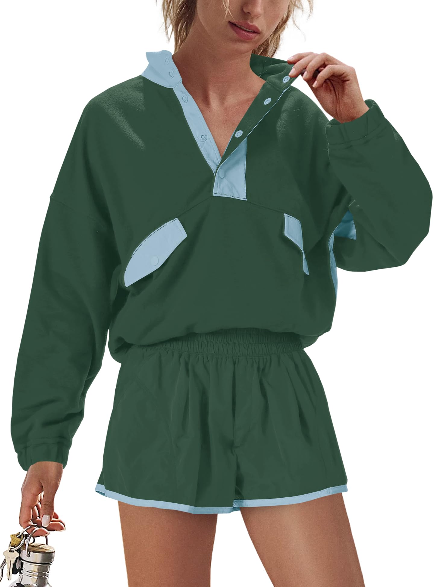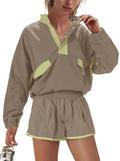 Women's Long Sleeve Top And Shorts Tracksuit Set With Pockets