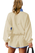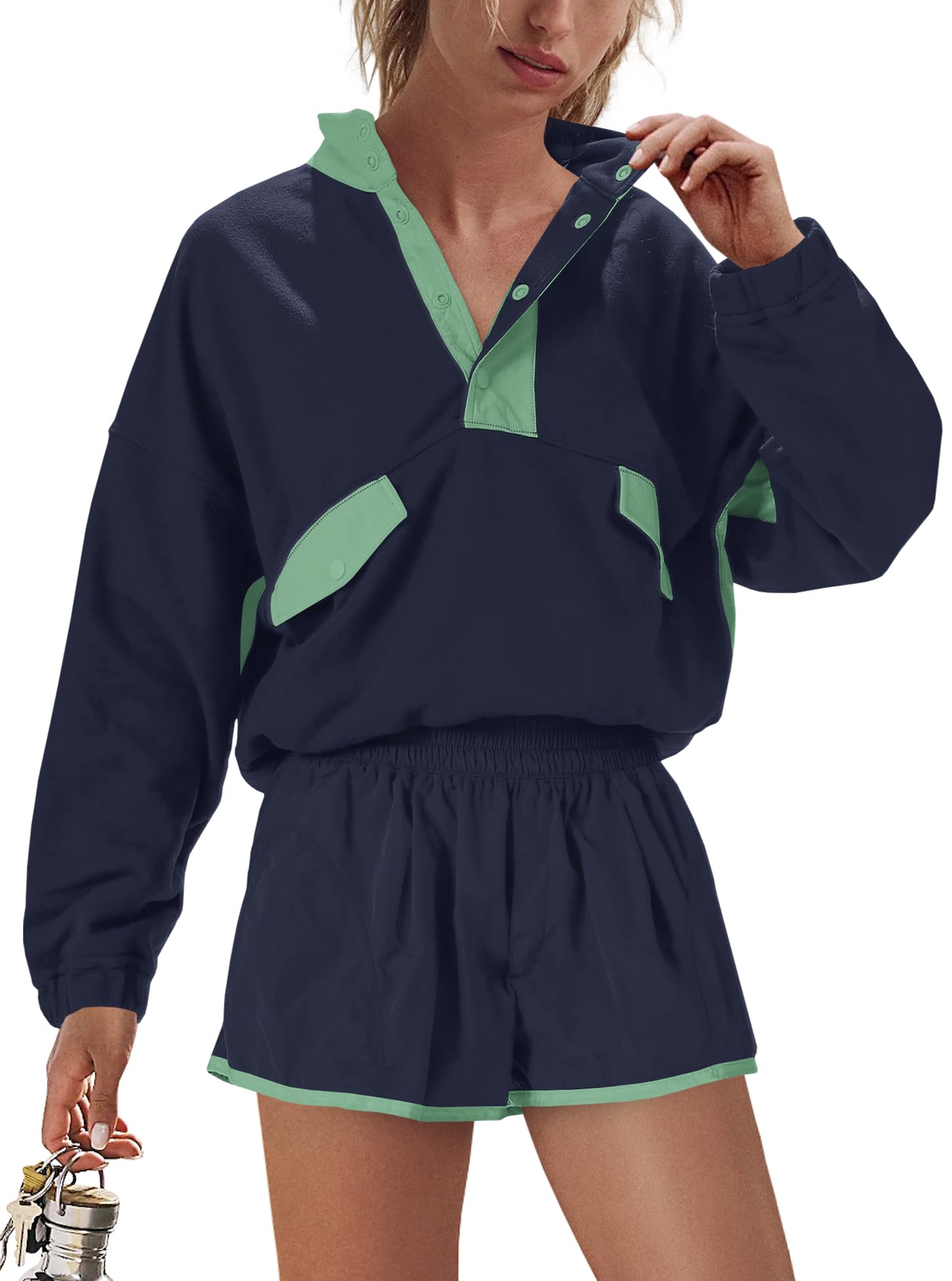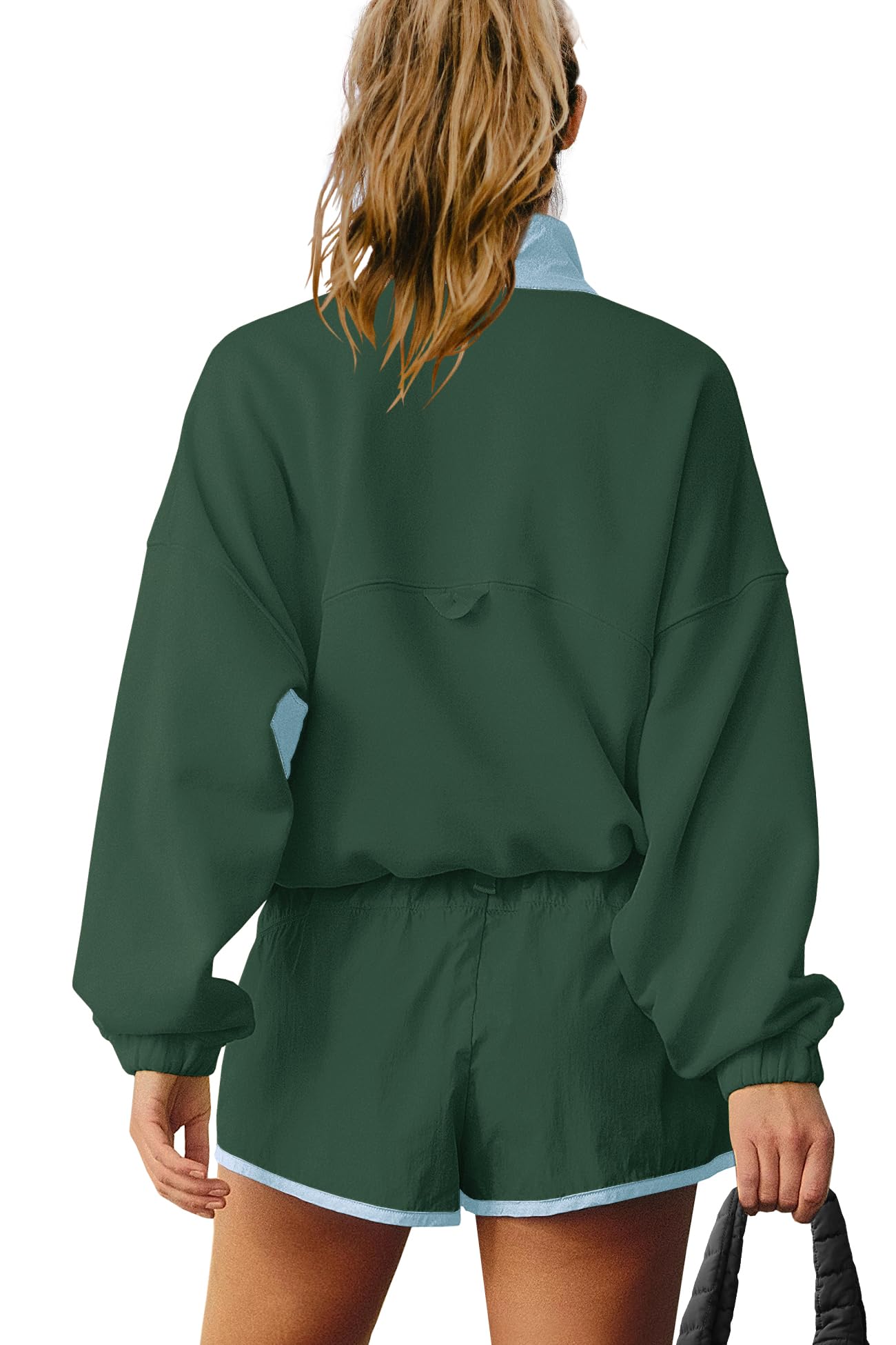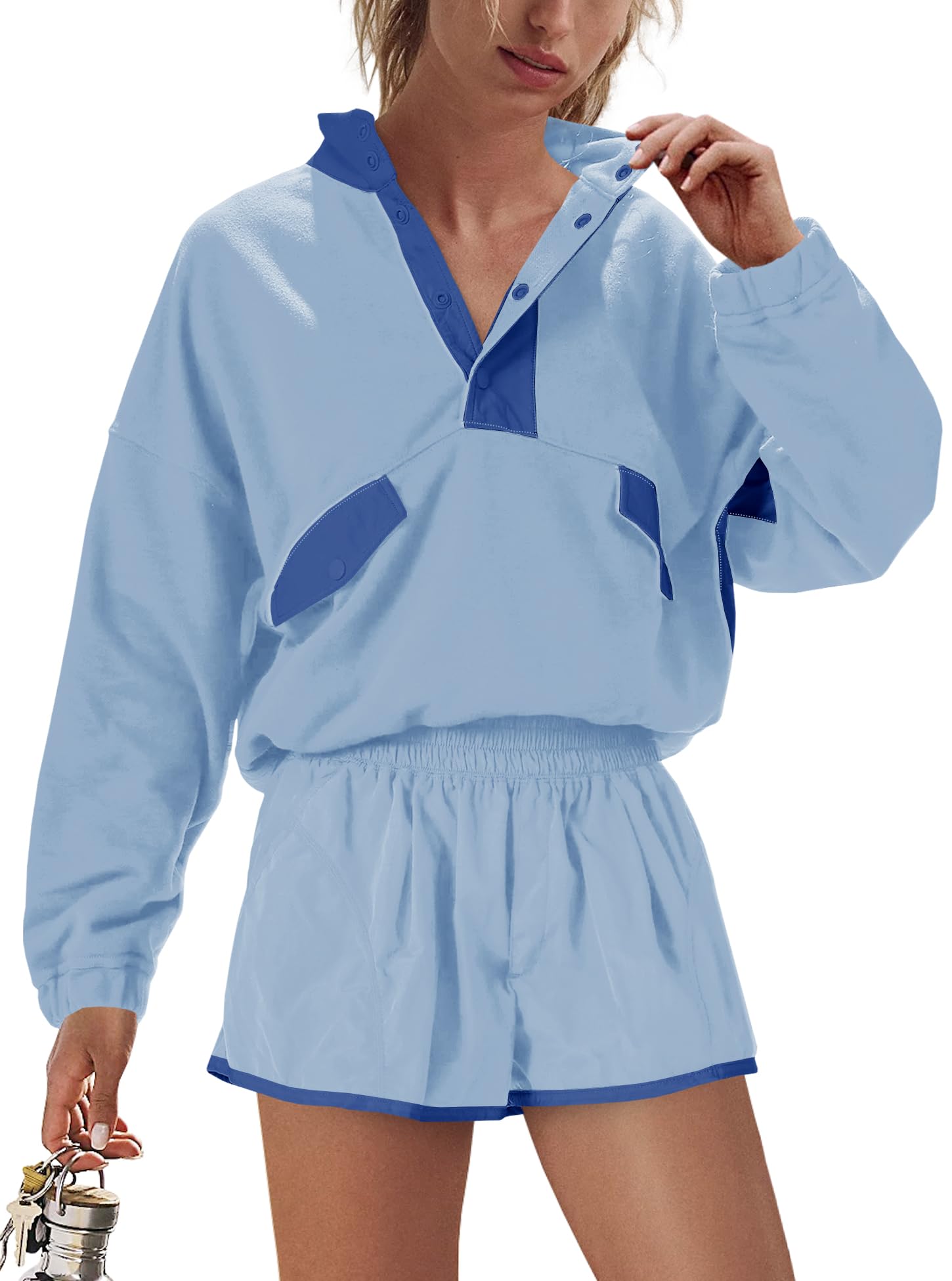Women's Long Sleeve Top And Shorts Tracksuit Set With Pockets
