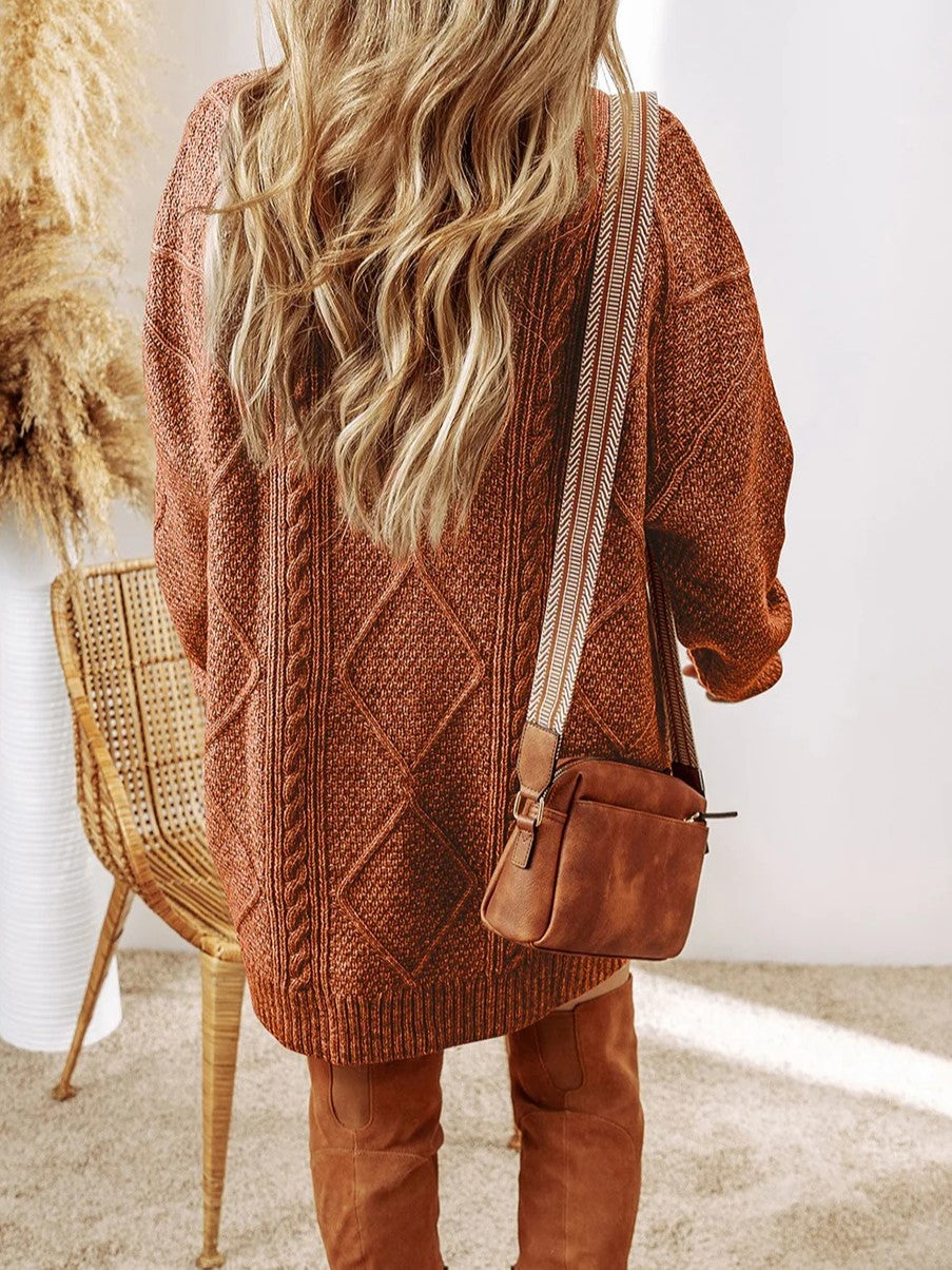 Cable-Knit & Diamond Texture: 3D cable-knit stripes + diamond-patterned panels create rich layers and retro charm.
