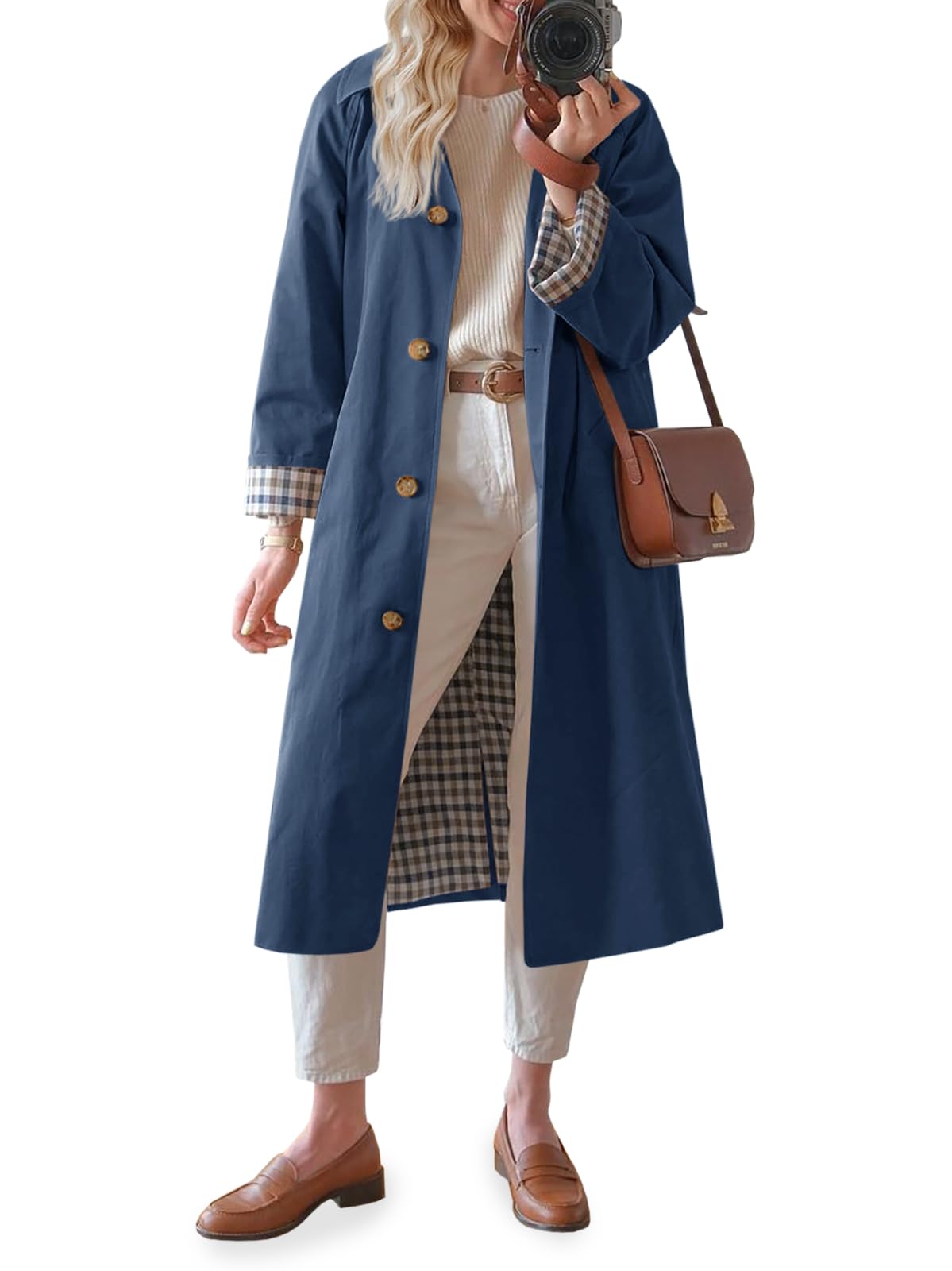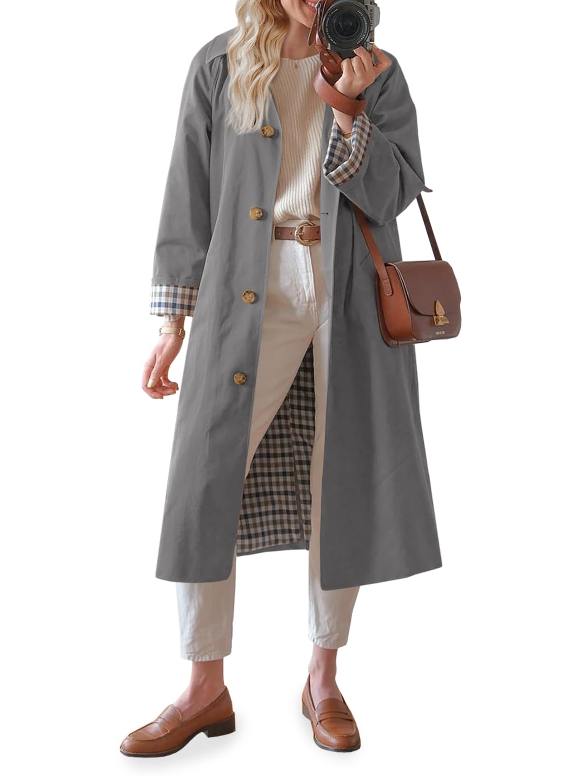 Womens Long Trench Coat Single Breasted Oversized Windproof Overcoat