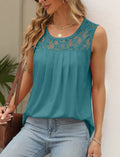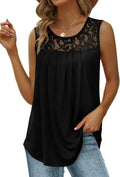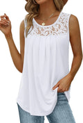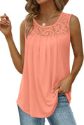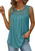Women's Loose Fit Pleated Scoop Neck Sleeveless Lace Tank Tops