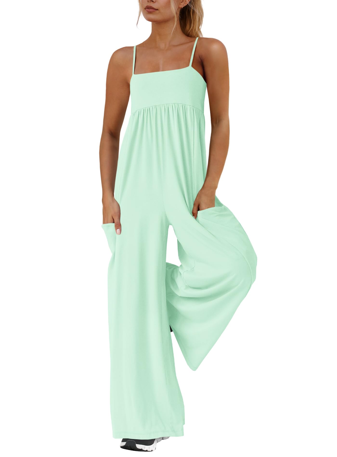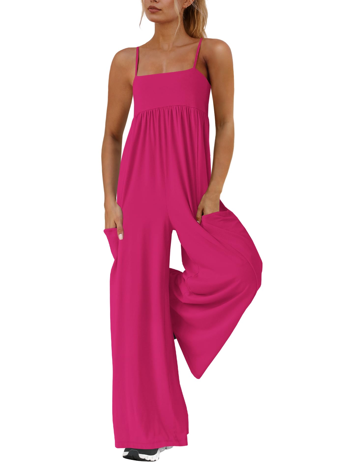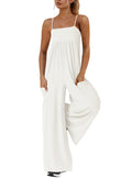 Women's Loose Fit Spaghetti Strap Wide Leg Jumpsuit with Pockets
