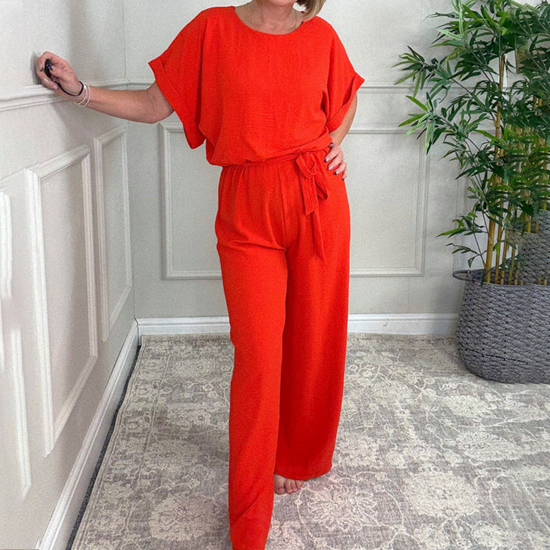 1 * Womens Loose Short Sleeve Belted Wide Leg Pant Romper