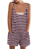 Women's Loose Striped Lace-Up Jumpsuit with Pockets