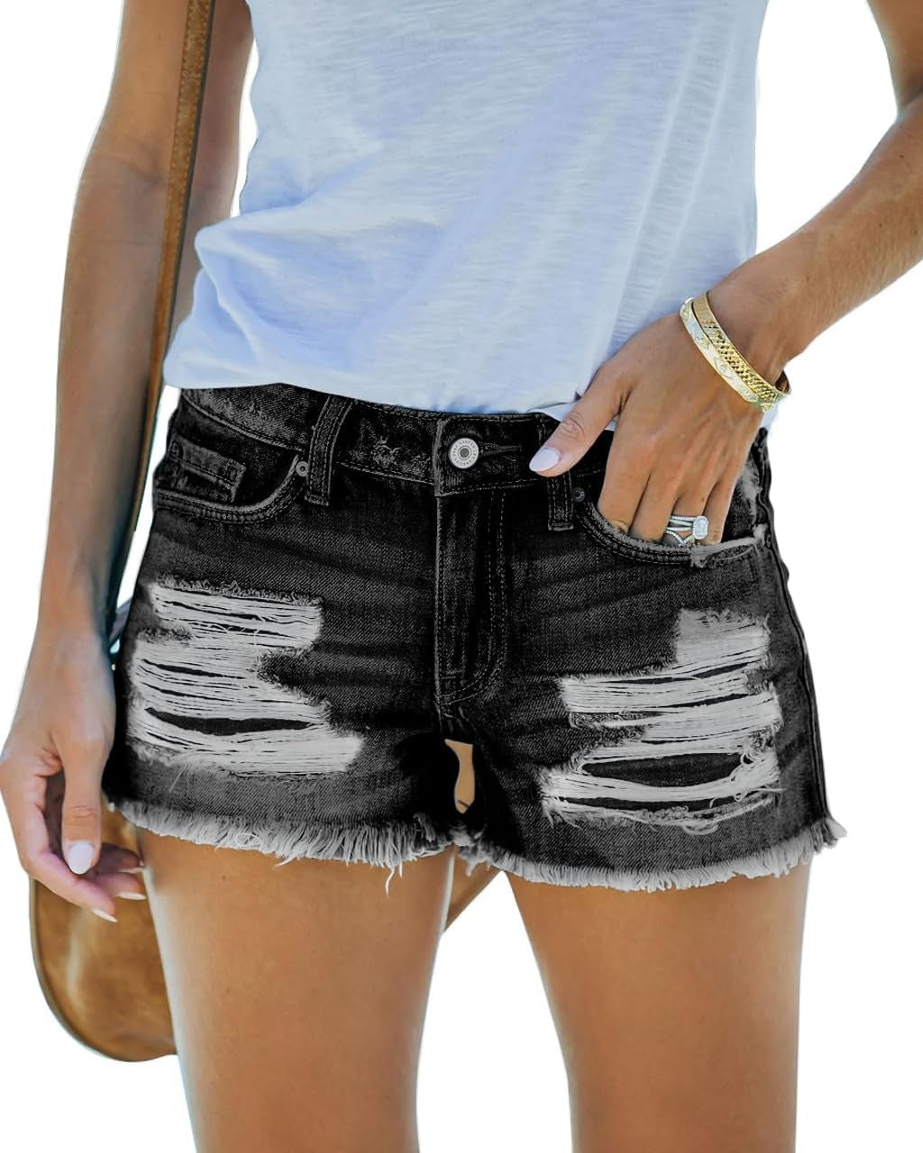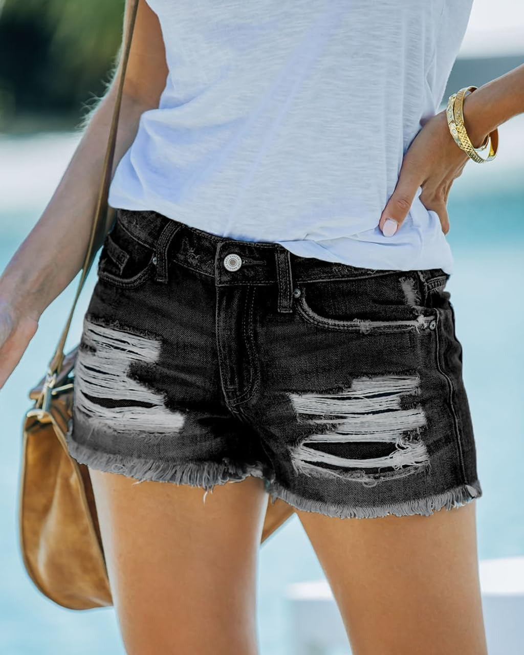 Women's Mid Rise Ripped Stretchy Jean Shorts
