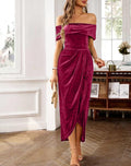 Women's Off-Shoulder High-Waisted Slit Velvet Dress