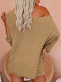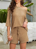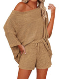 This Off-the-shoulder Knit Top is the Ideal Knit Top for Warm Weather! This stretch top is loose and comfortable, with an off-the-shoulder neckline and three-quarter sleeves to enhance the wearing experience. Pair it with the same knitted shorts for a comfortable wearing experience!