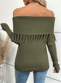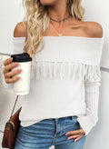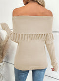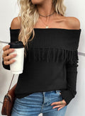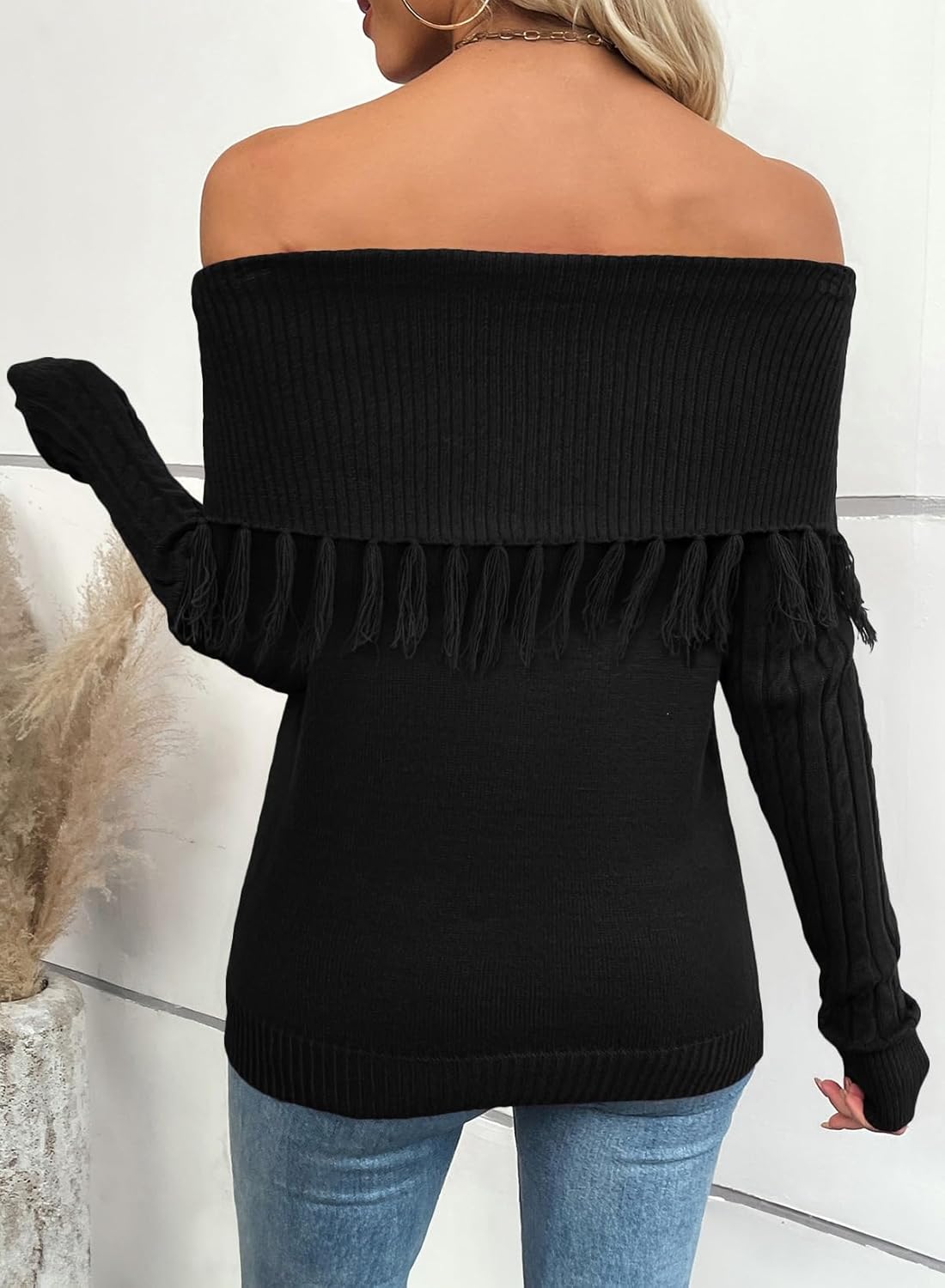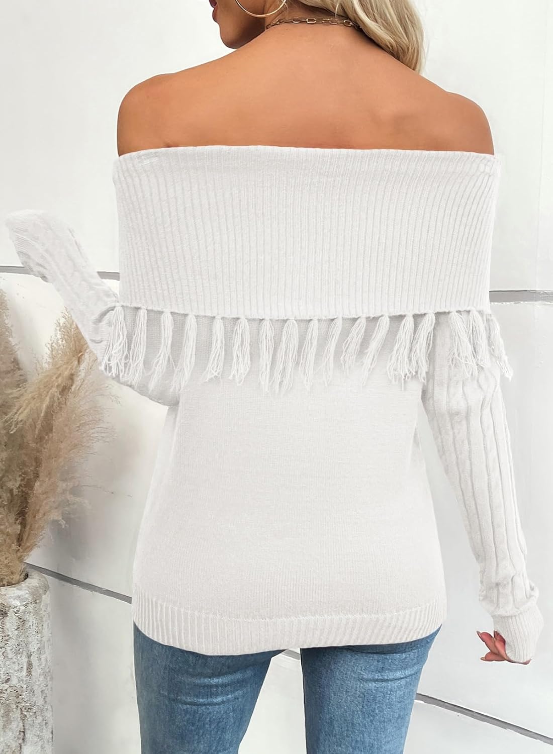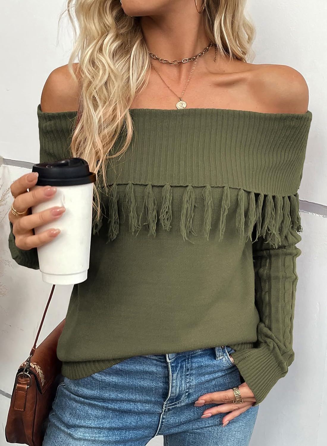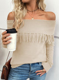 Womens Off The Shoulder Fringe Long Sleeve Sweater