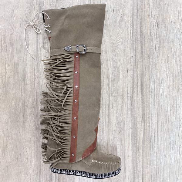 Our artisans employ traditional stitching techniques, using precise hand-stitching to affix the suede material to the boot's body. This ensures that every seam is sturdy and resistant to wear.Details such as tassels and rivets are added by hand, with each rivet precisely secured to the boot to prevent loosening or detachment.