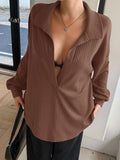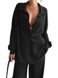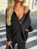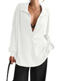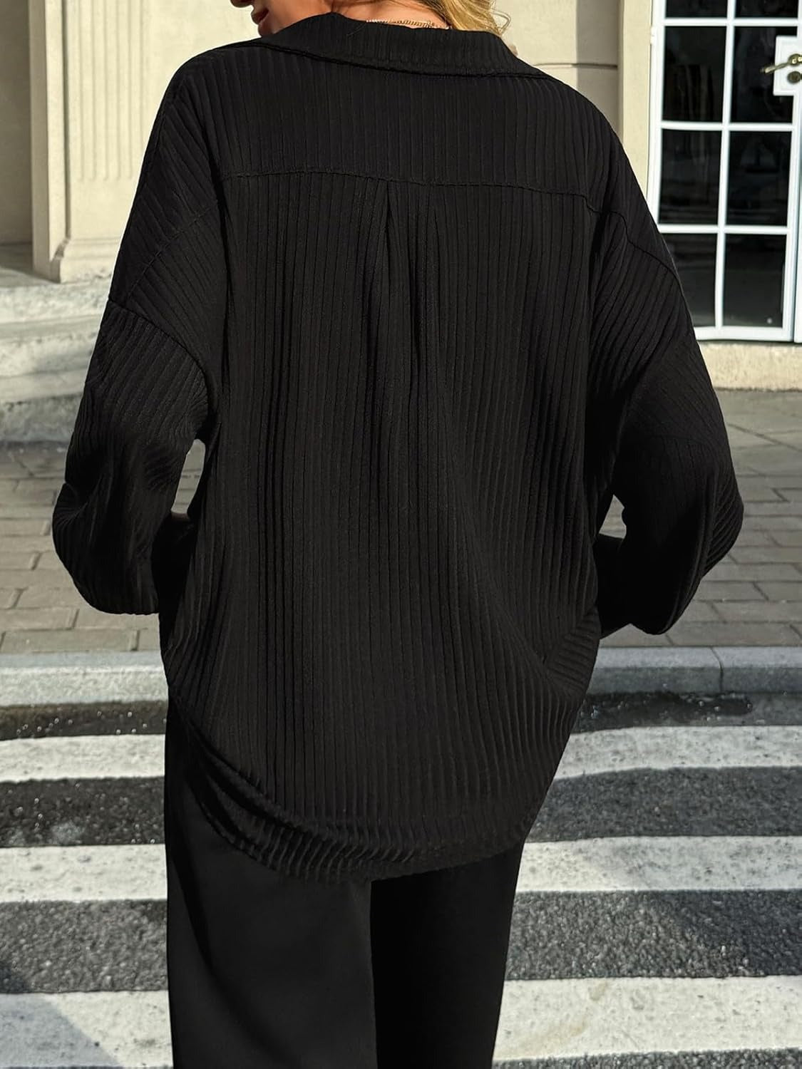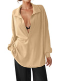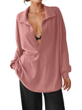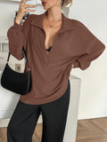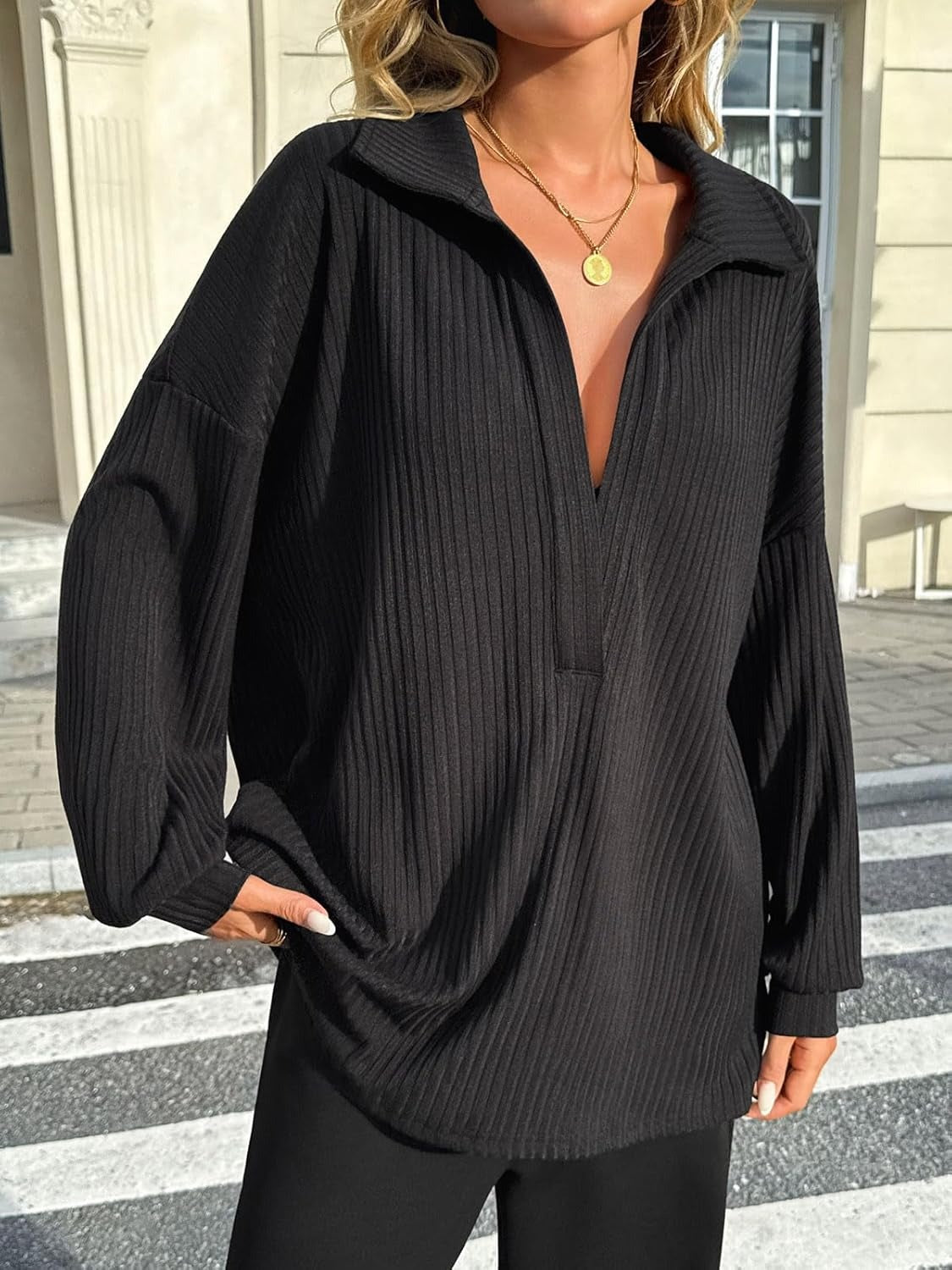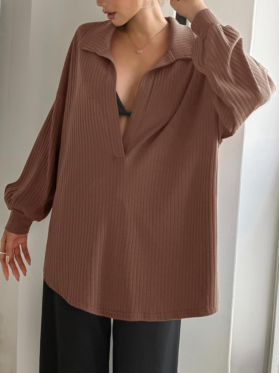 Womens Oversized Deep V Neck Sweatshirts Collared Long Sleeve Ribbed Knit Pullover Tops
