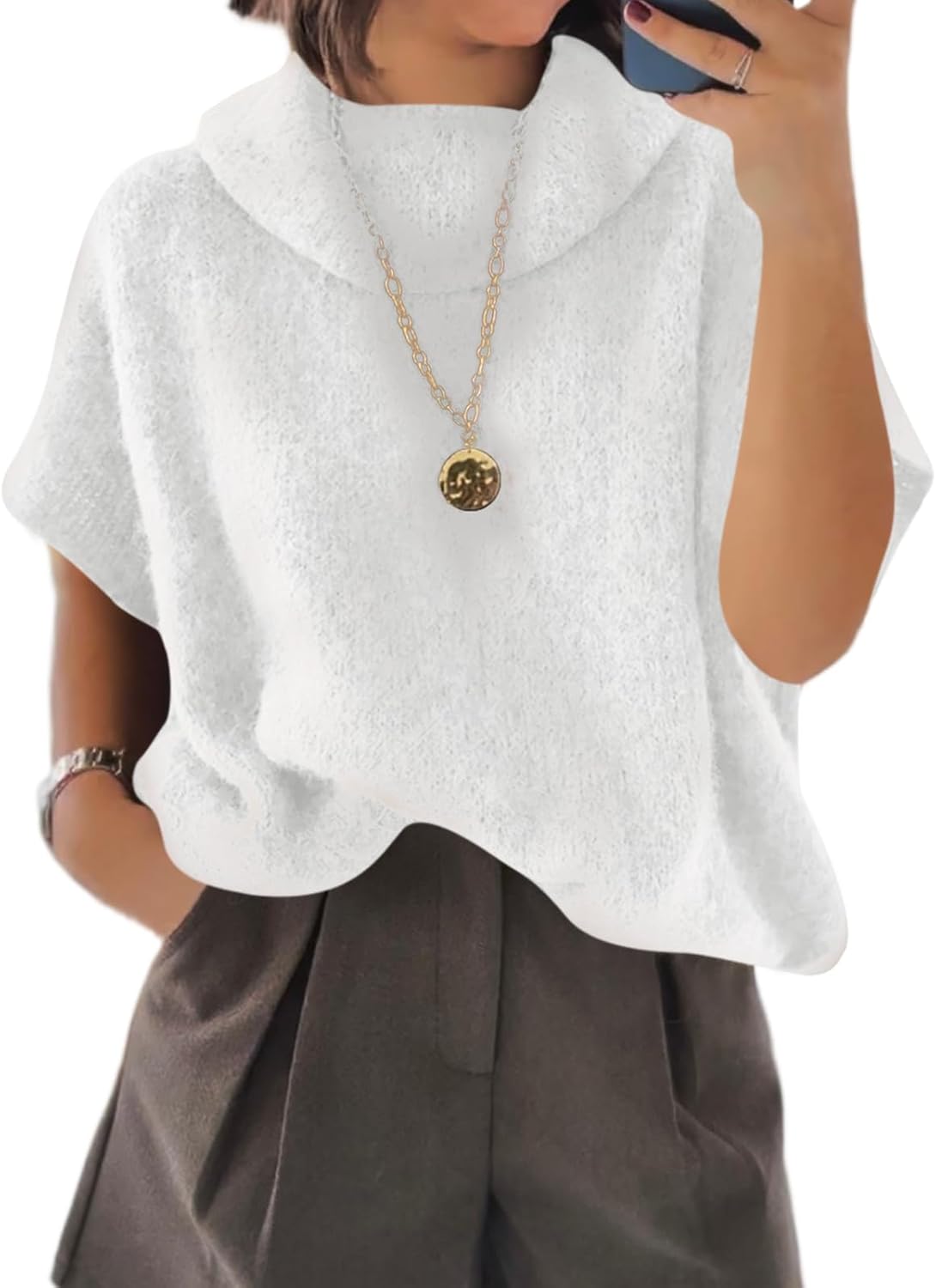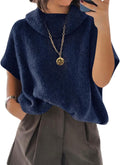 Womens Oversized Short Batwing Sleeve Turtleneck Knit Sweaters