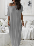 Women's Oversized Solid Slant Shoulder Pocket Dress
