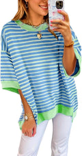 Women's Oversized Striped Color Block Half Sleeve Tops