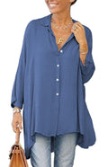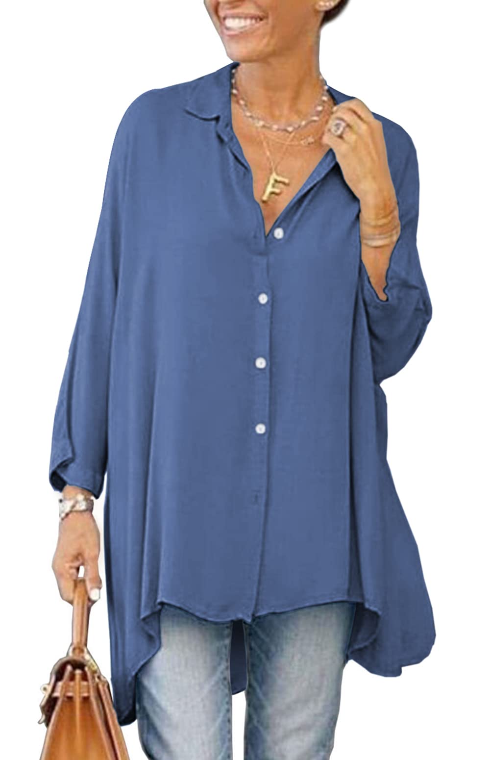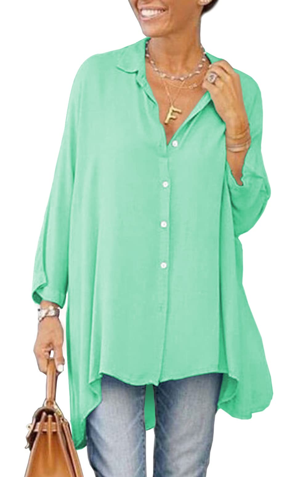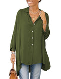 Womens Oversized V Neck Collar T Shirts Button Down Long Sleeve Shirt