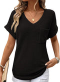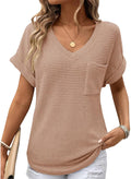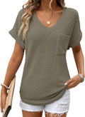 Women's Oversized Waffle V Neck Short Sleeve Casual Top