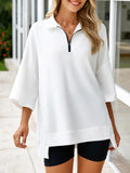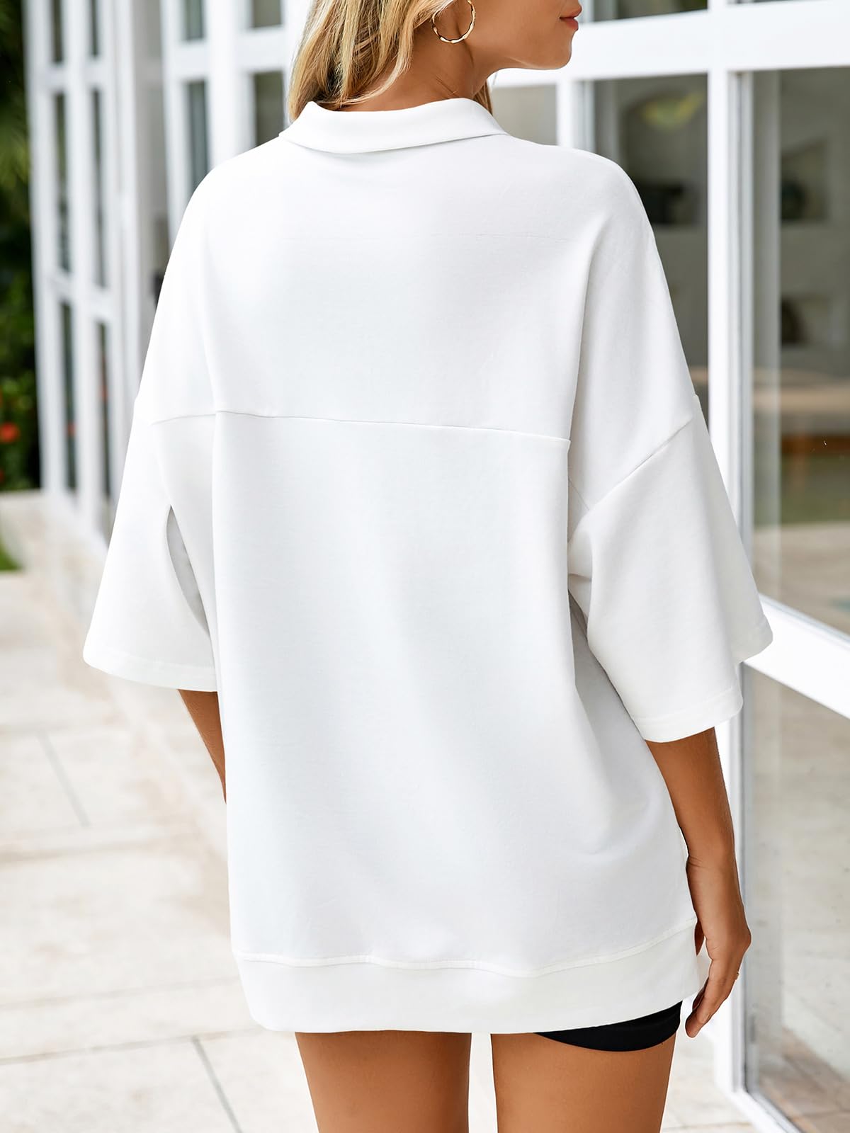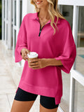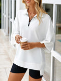 Women's Oversized Zip Up V Neck 3/4 Sleeve High Low Pullover Tunic Tops