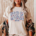Get ready to celebrate Independence Day in style with our USA EST. 1776 tee! Classic pride with a floral twist! This tee features bold collegiate-style letters filled with red, white, and blue floral patterns — perfect for celebrating freedom in feminine style.