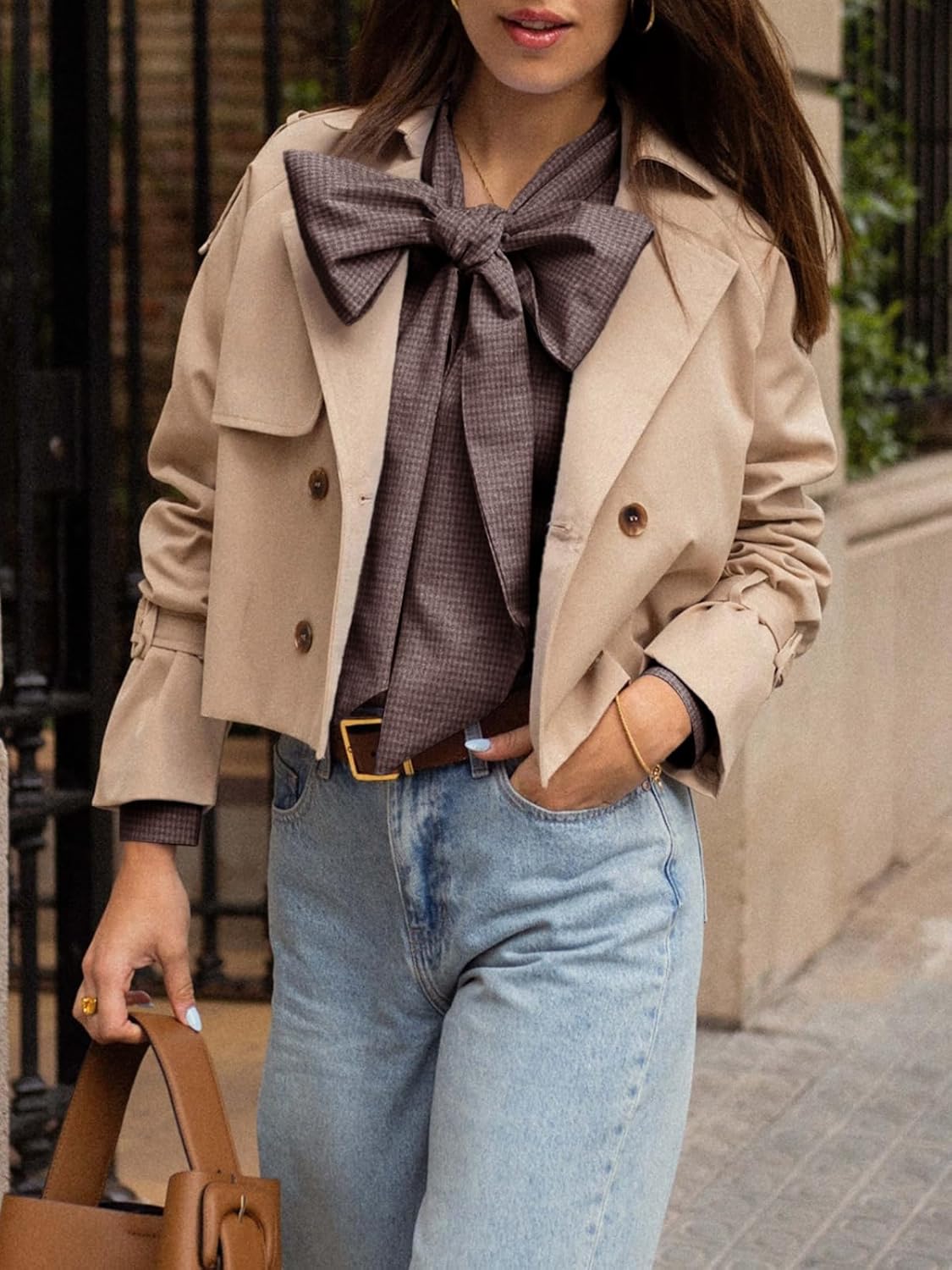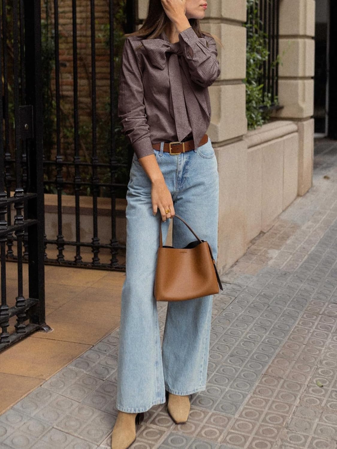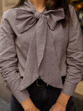 Elevate your wardrobe with this Women's Plaid Shirt featuring a chic bow-tied neck for a sophisticated touch. Crafted with attention to detail, this plaid shirt is designed with classic shirt cuffs and a straight cut for a polished look. Whether you're heading to the office or a weekend brunch, this button-down shirt is versatile enough to pair with jeans or dress pants.