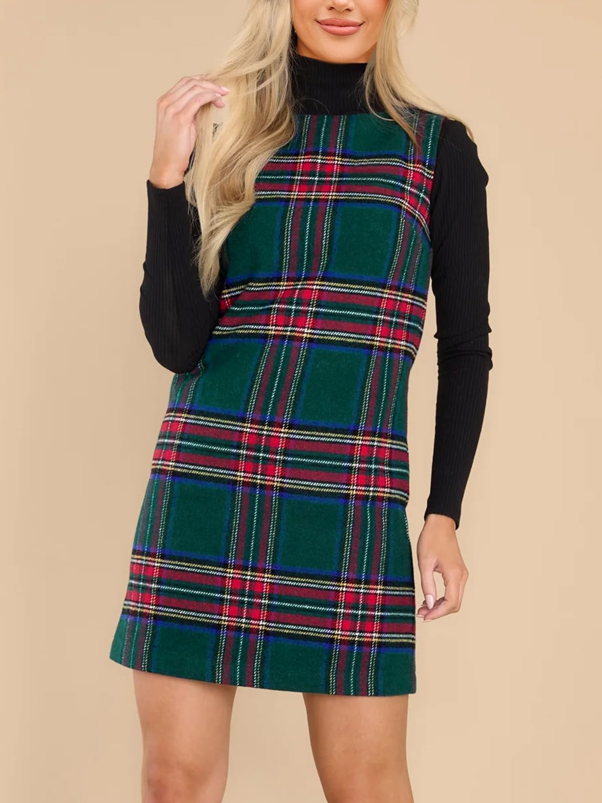 You are going to love this plaid dress! It's so festive and perfect for the holiday season! That print is so classic and we love that you can wear this dress on its own, layered over a collared button down like the model, or with a sweater over top! You are going to look great in this dress for any holiday party!