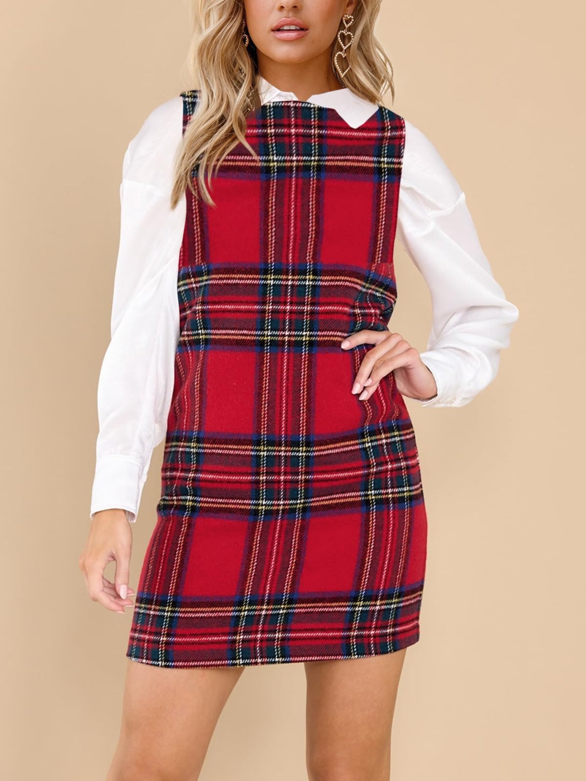 Women's Plaid Sleeveless Round Neck A Line Dresses