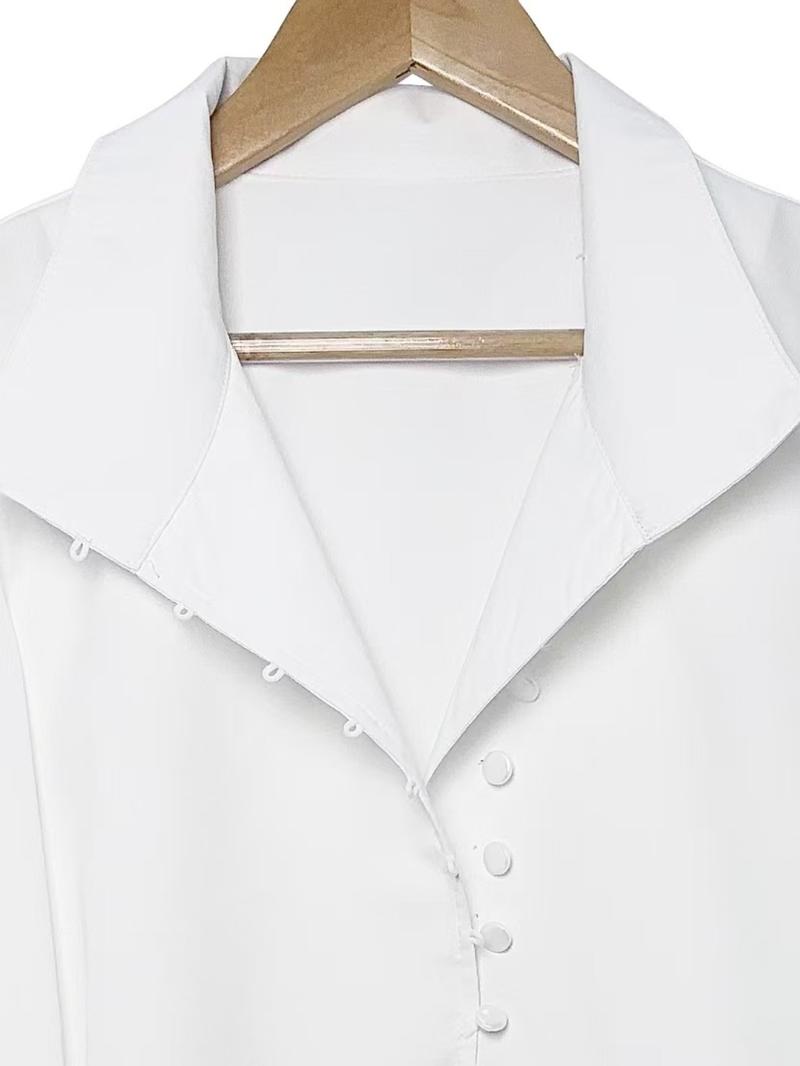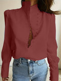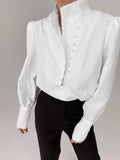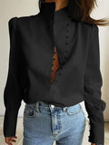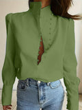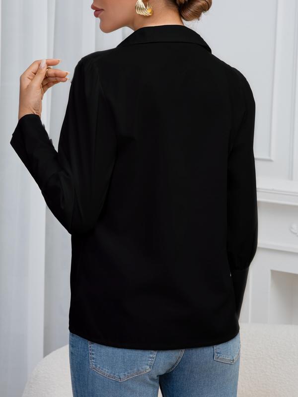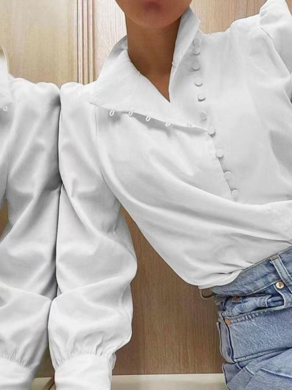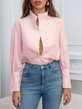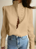 Women's Plain Button Front Shirt Casual Elegant Long Sleeve Top