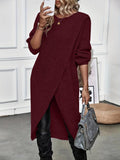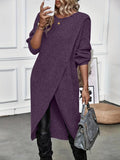 Women's Plain High Low Hem Wrap Tunic Sweater Dress