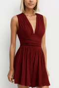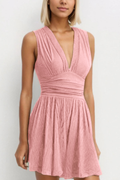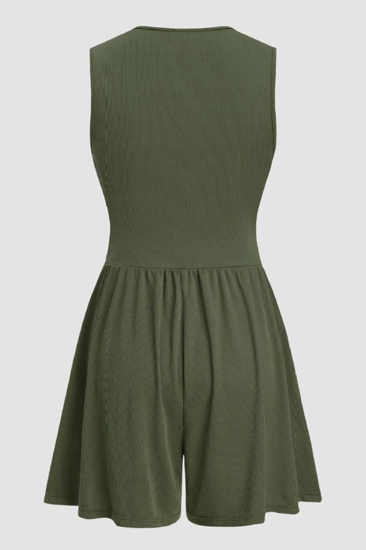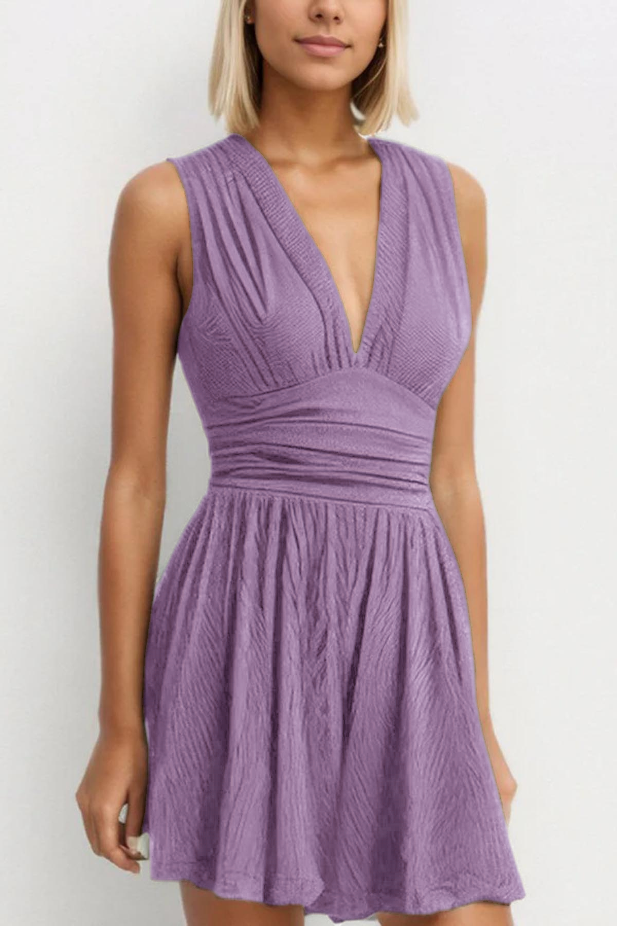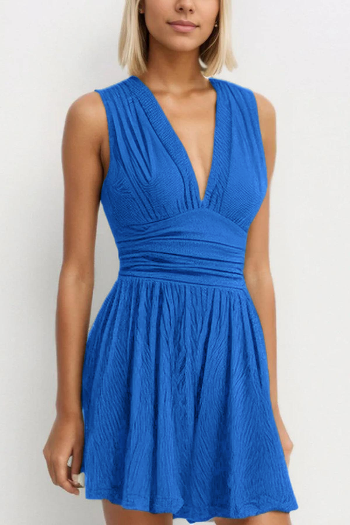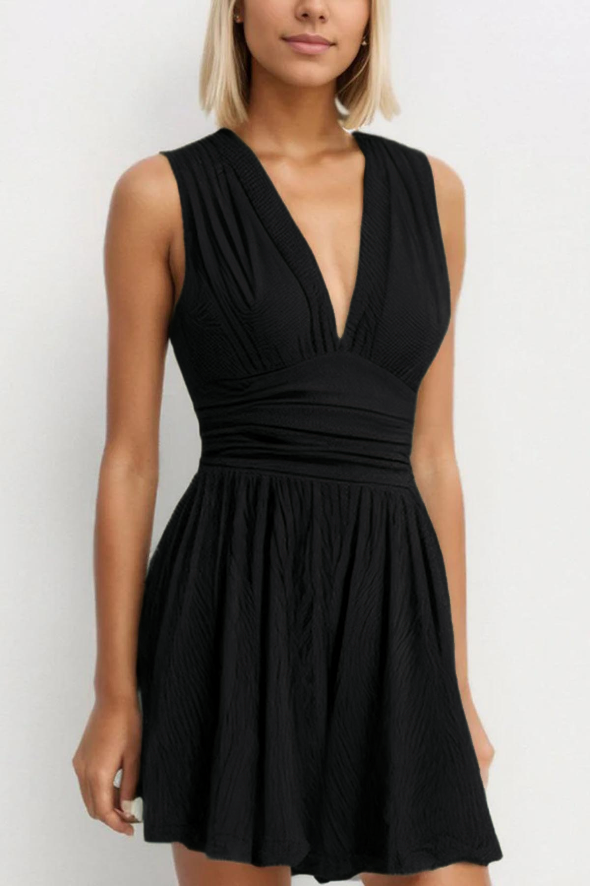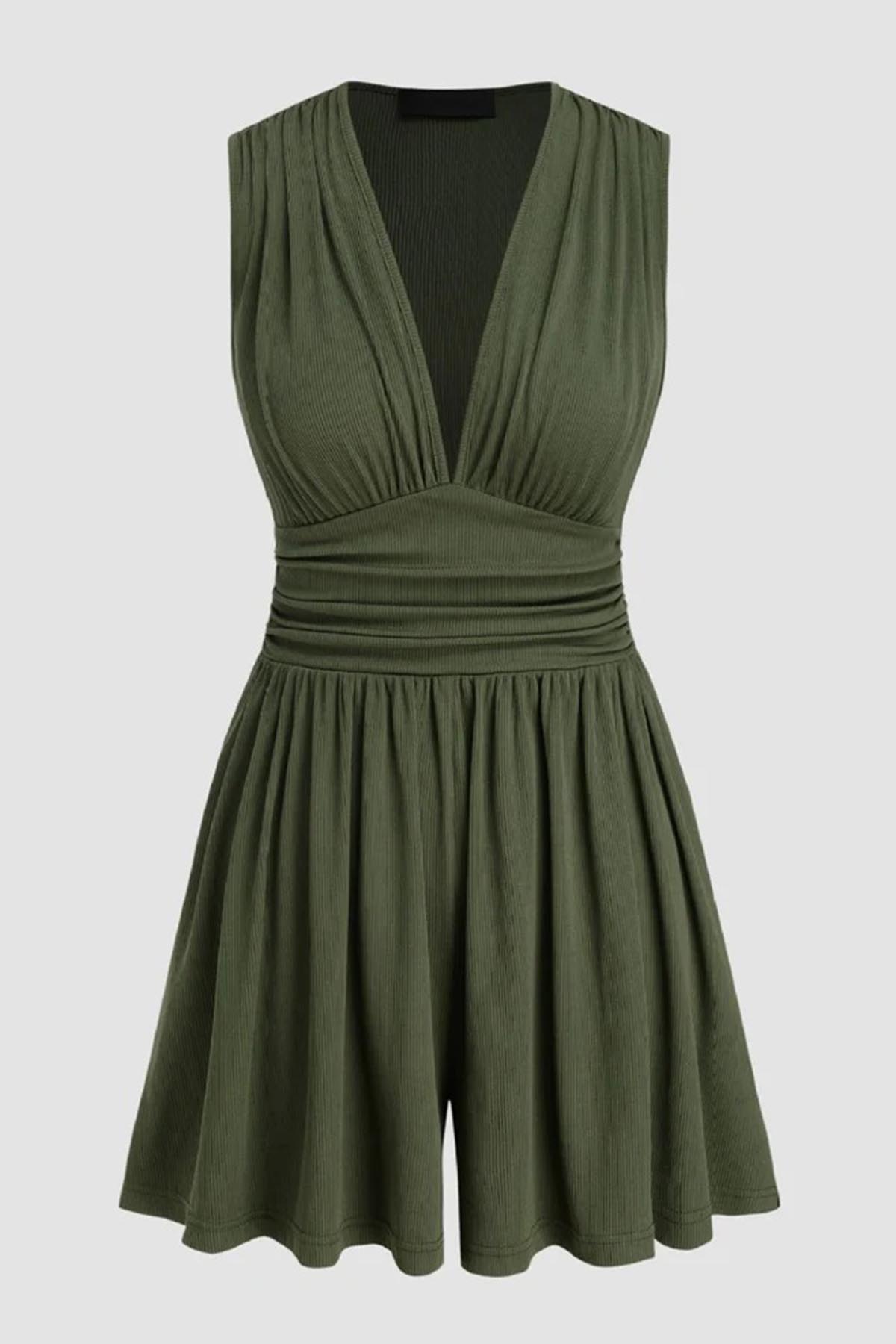 Women's Plain Ruched Deep V Neck Tank Sleeveless Romper
