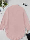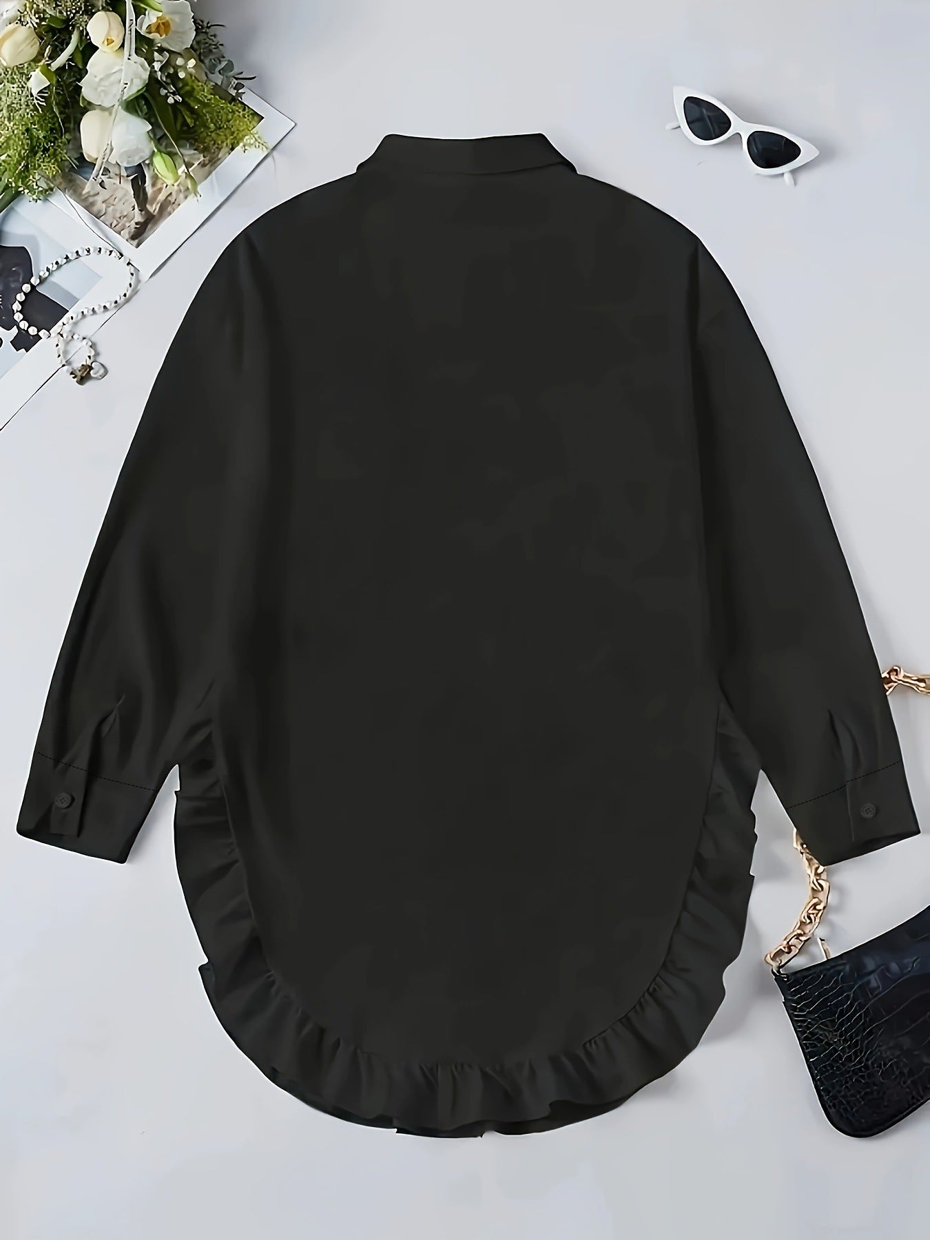 Elevate your everyday style with this relaxed-fit blouse, accented by playful ruffles and a clean button-up front. Designed to keep you comfortable throughout the day, it blends a breezy silhouette with charming details that make it stand out from the crowd.