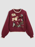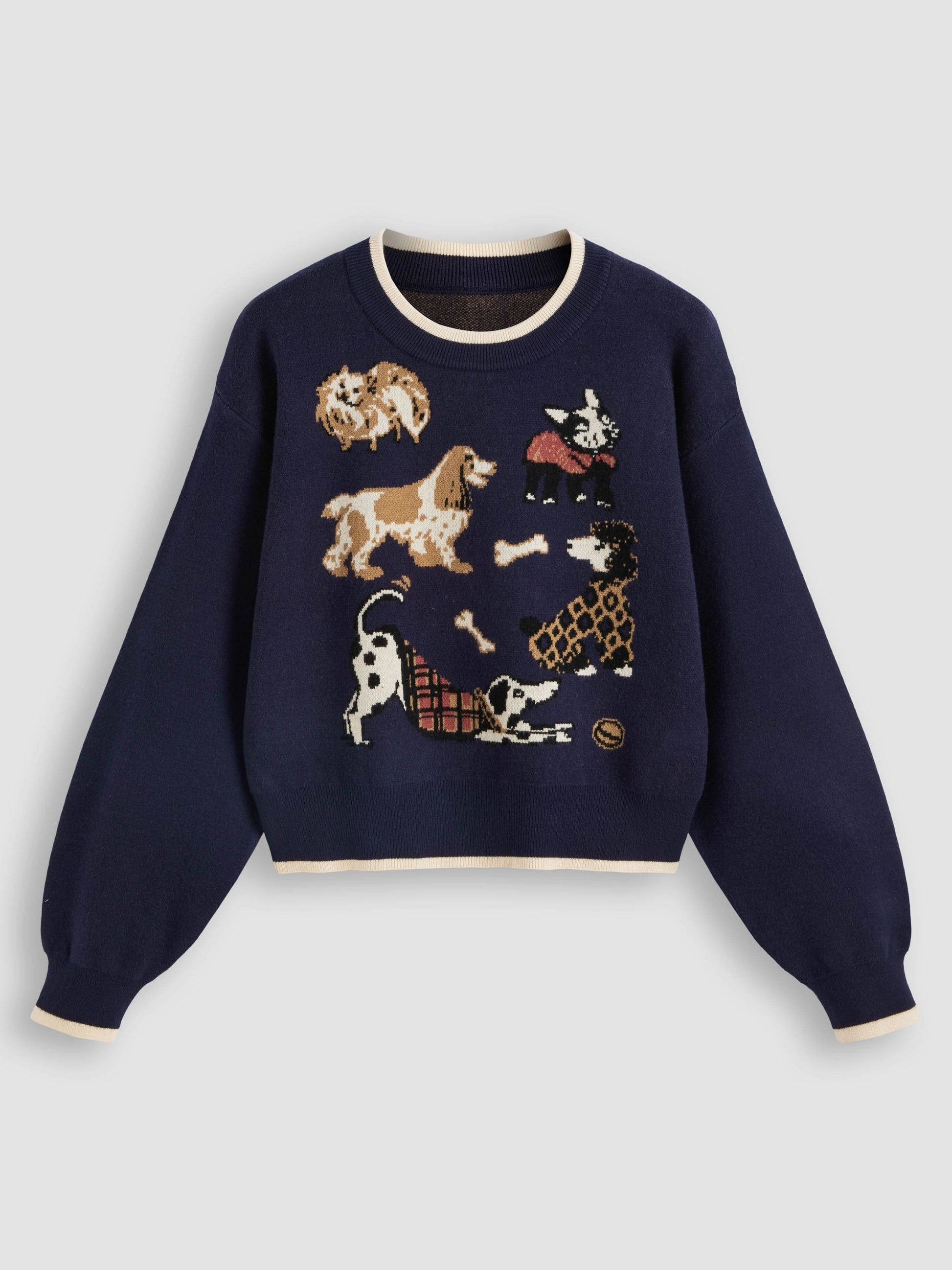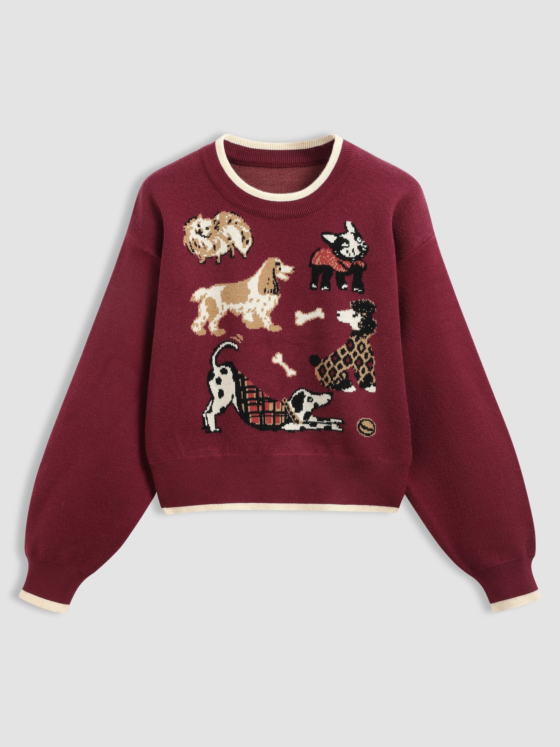 Who can resist a sweater packed with pups? This cozy knit top, bursting with adorable doggos, wraps autumn’s comfort right into your style.