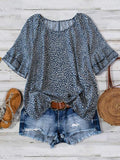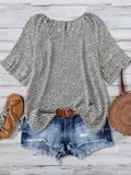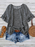 Women's Printed Ruffled Layered Sleeve Short Sleeve Top