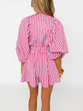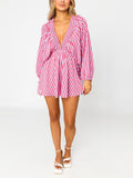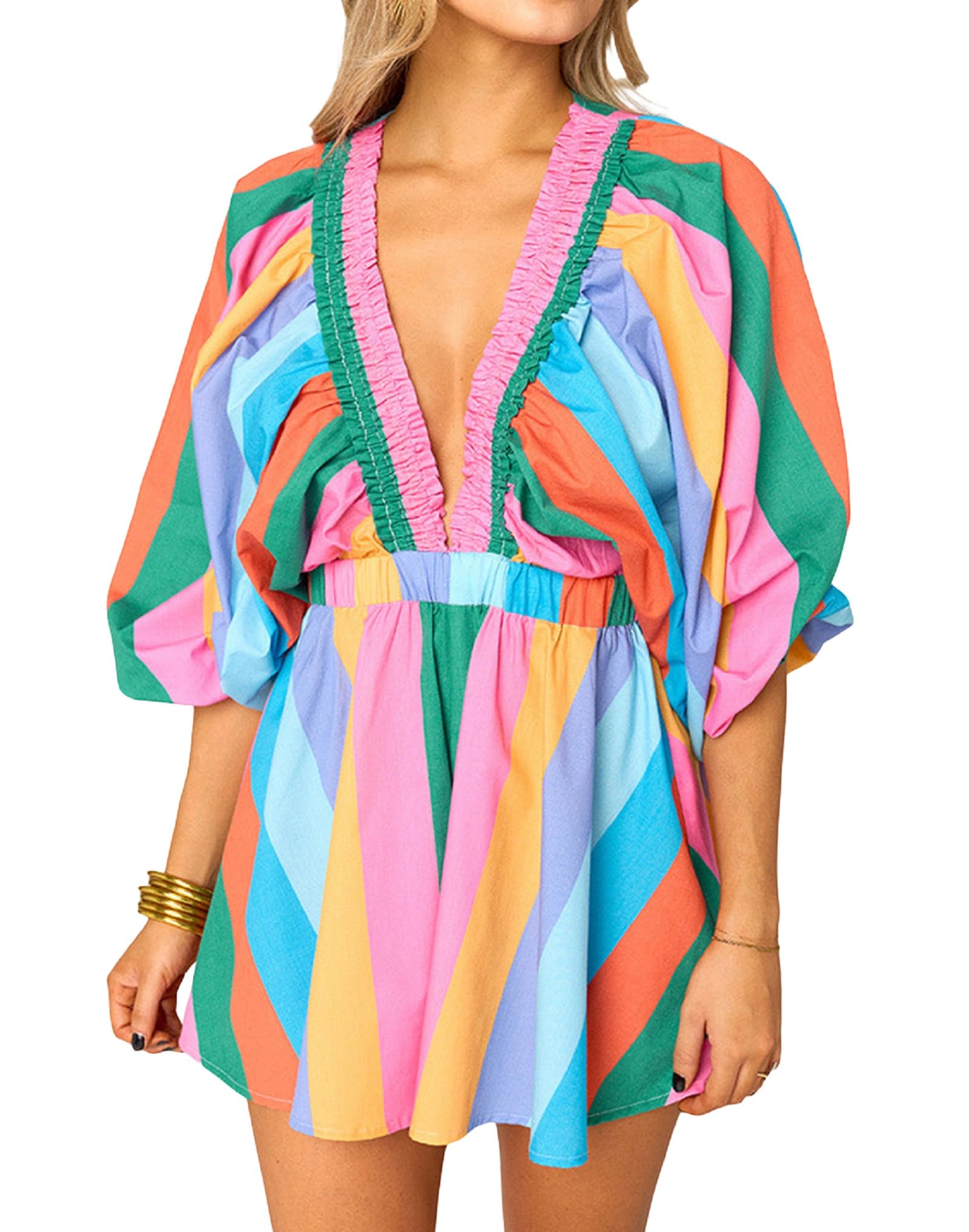 Release your sexy side in our deep V-neck striped jumpsuit. The deep V-neck design of this bold striped print jumpsuit, sexy and charming shape, ensures that you are fashionable and dynamic with every step, and you will attract attention wherever you go.